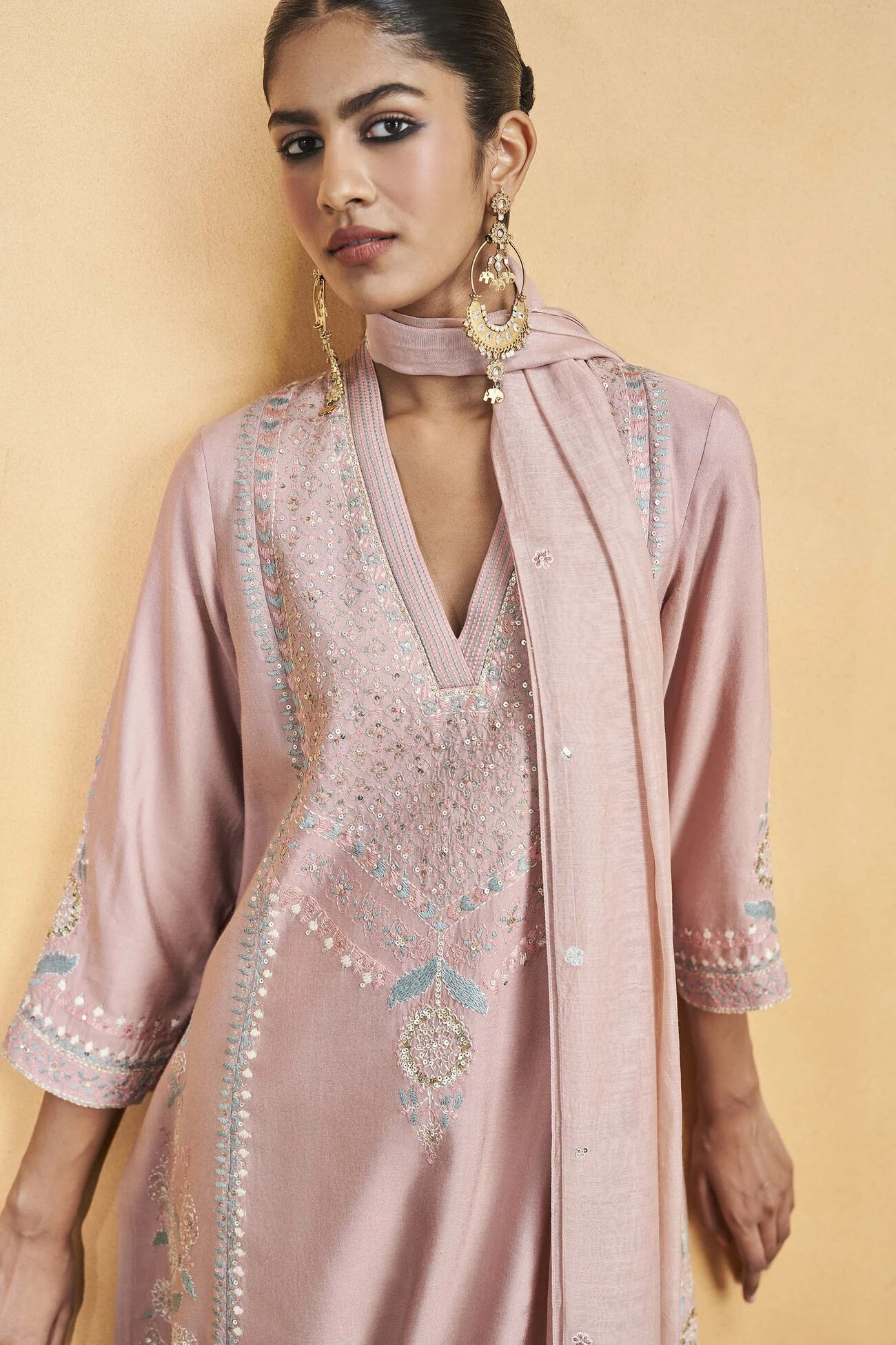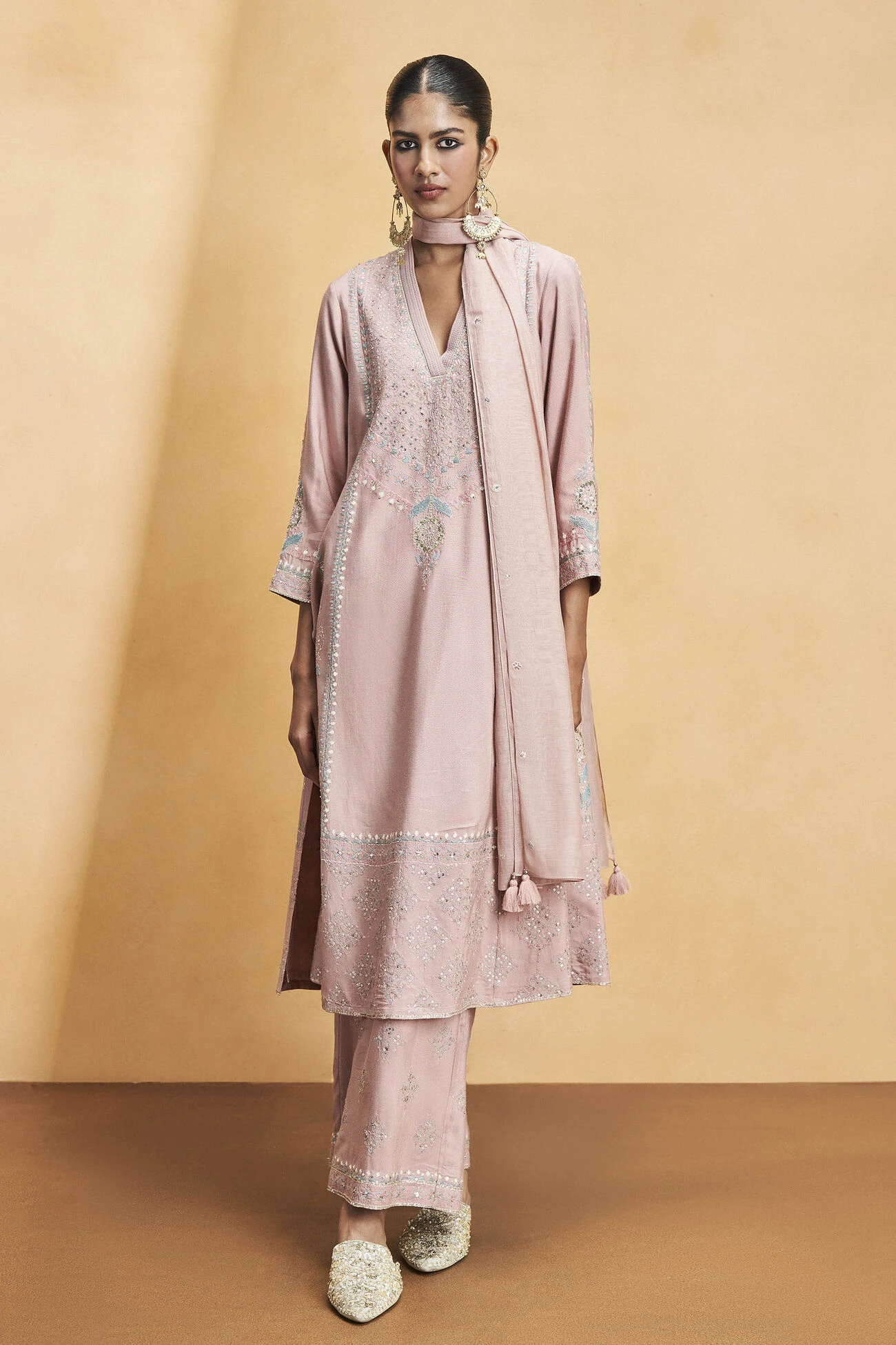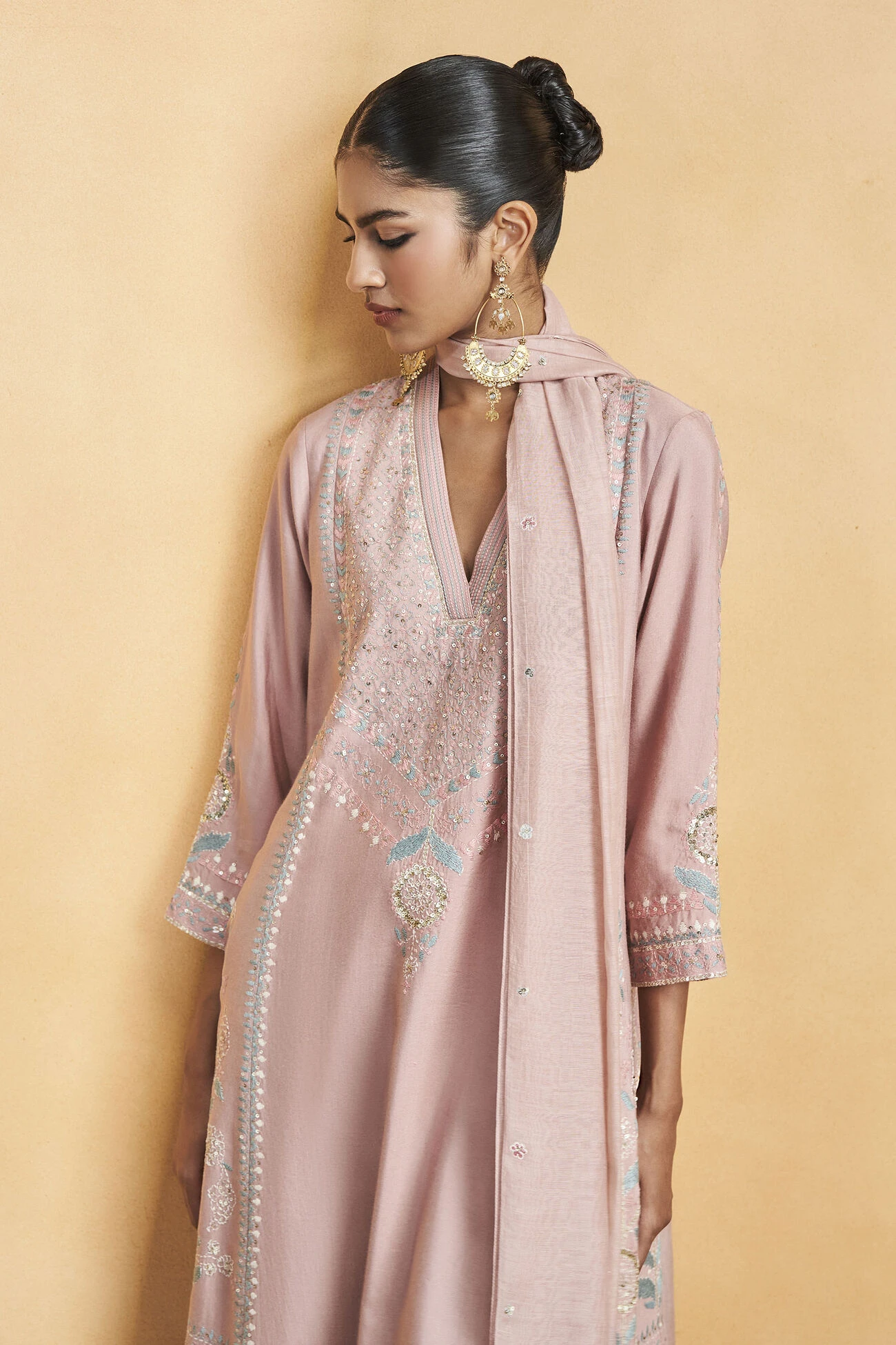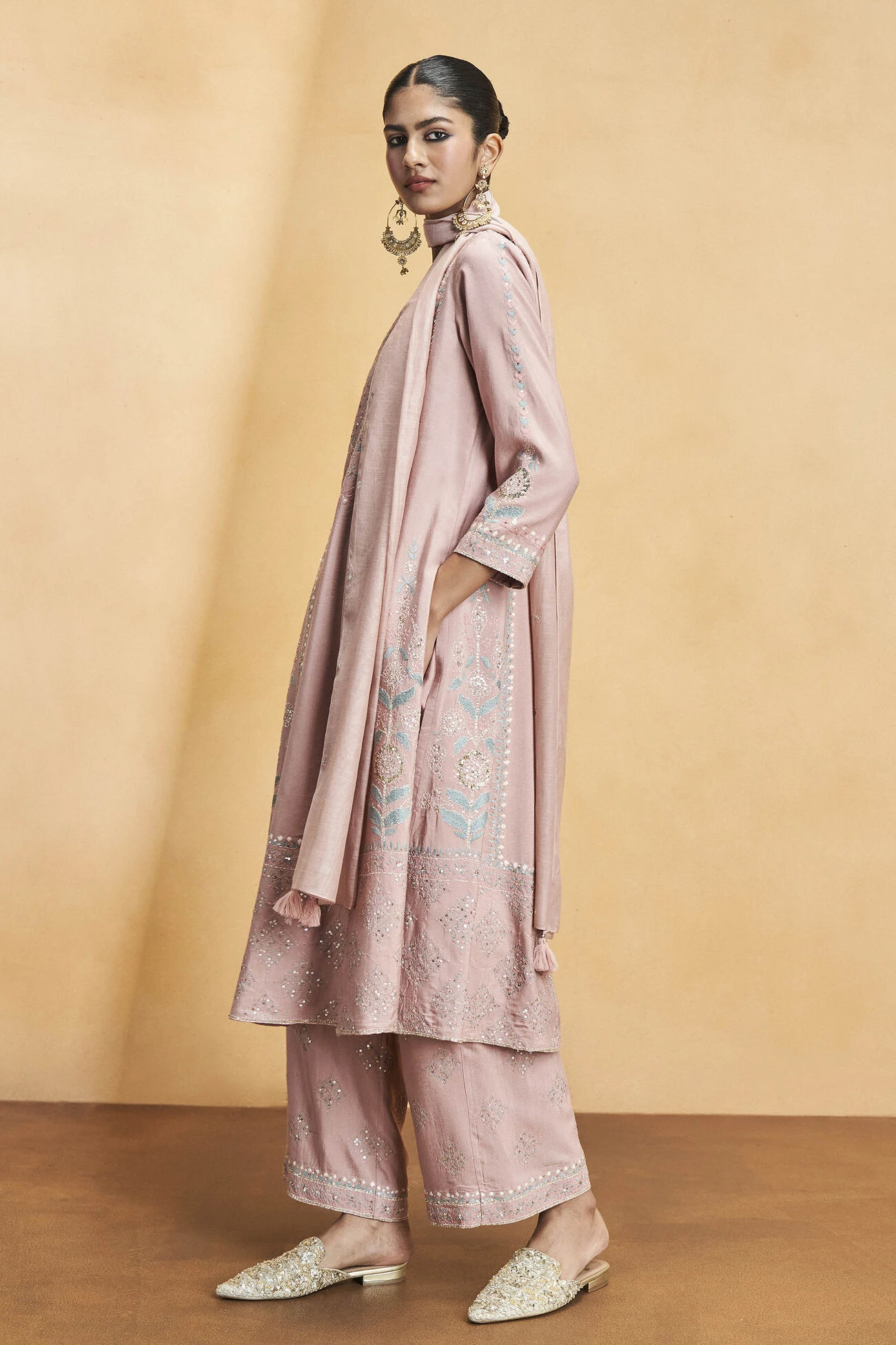 Kurta & Bottom: 87% Viscose + 13% Silk; Dupatta: 80% Cotton + 20% Silk; Lining: 100% Cotton