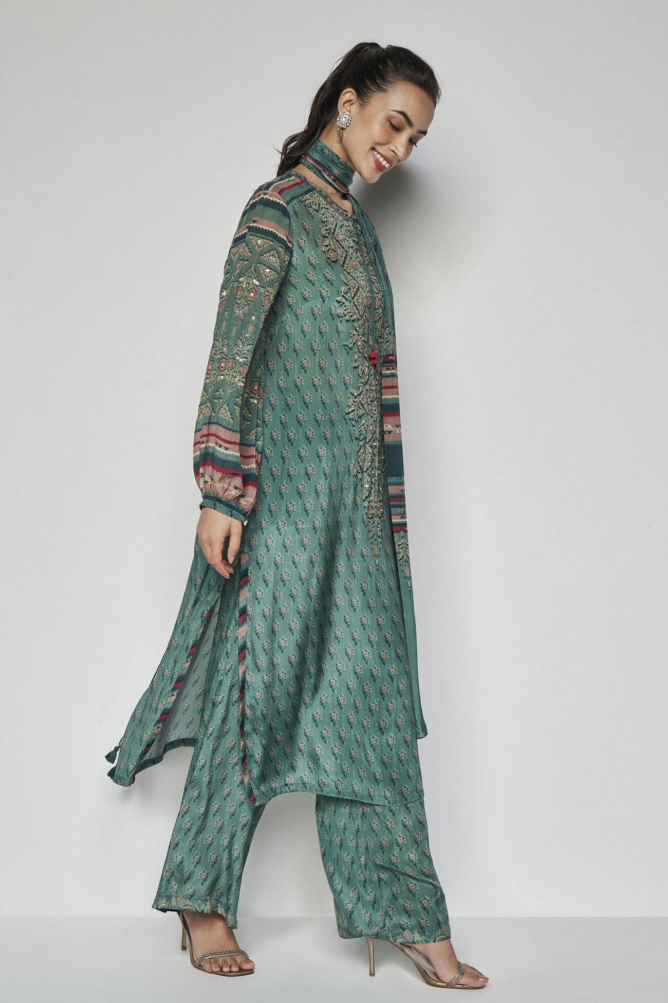 Nature-inspired prints highlight the resplendent green canvas of Aiza. An easygoing set and a wardrobe must-have.