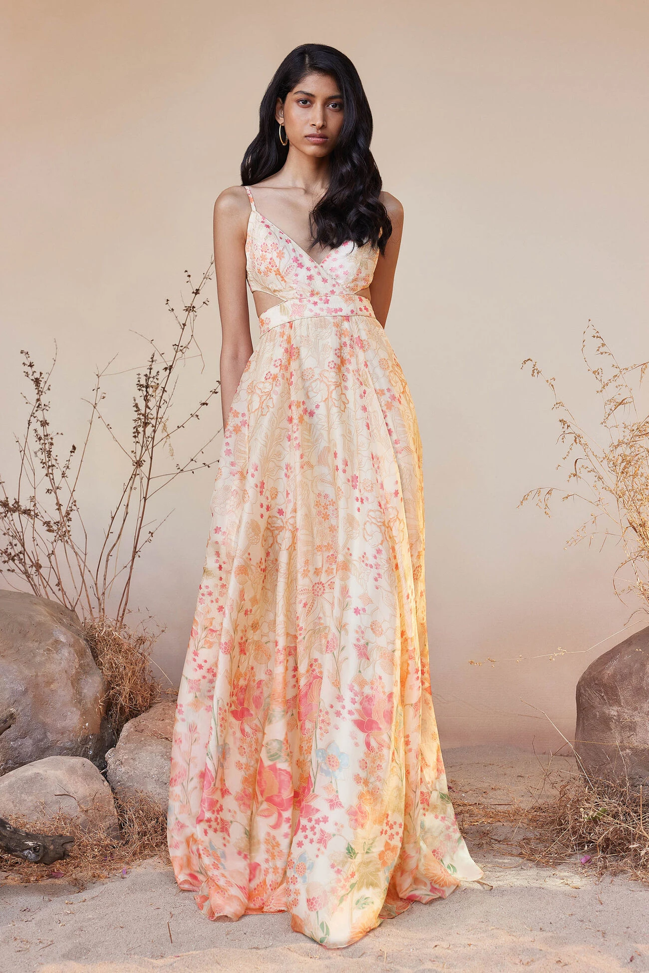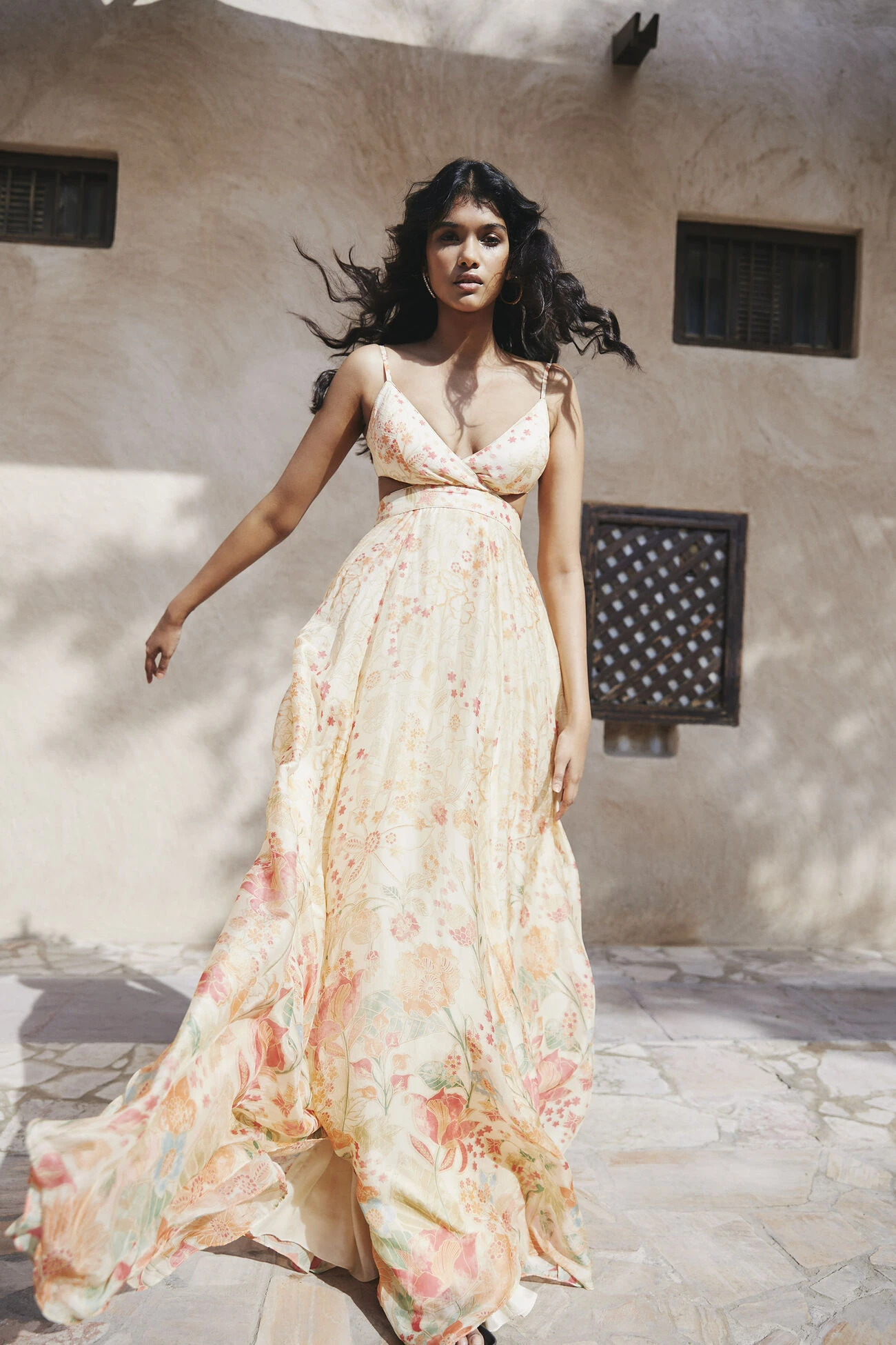 Inspired by the soft tone of desert dunes, Alaya is set to mesmerize. Enchanting florals and cut-out details add to its flowy look.
