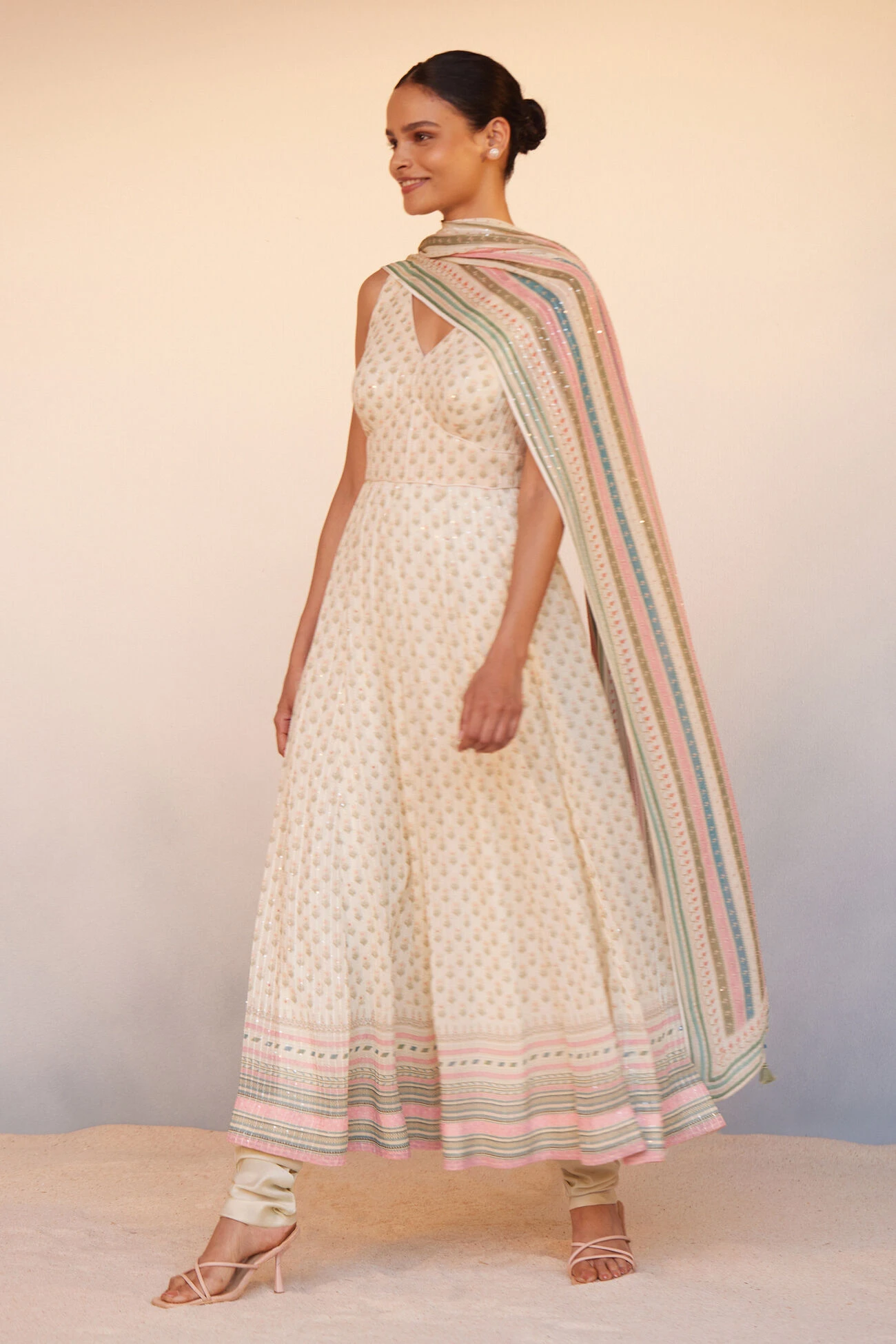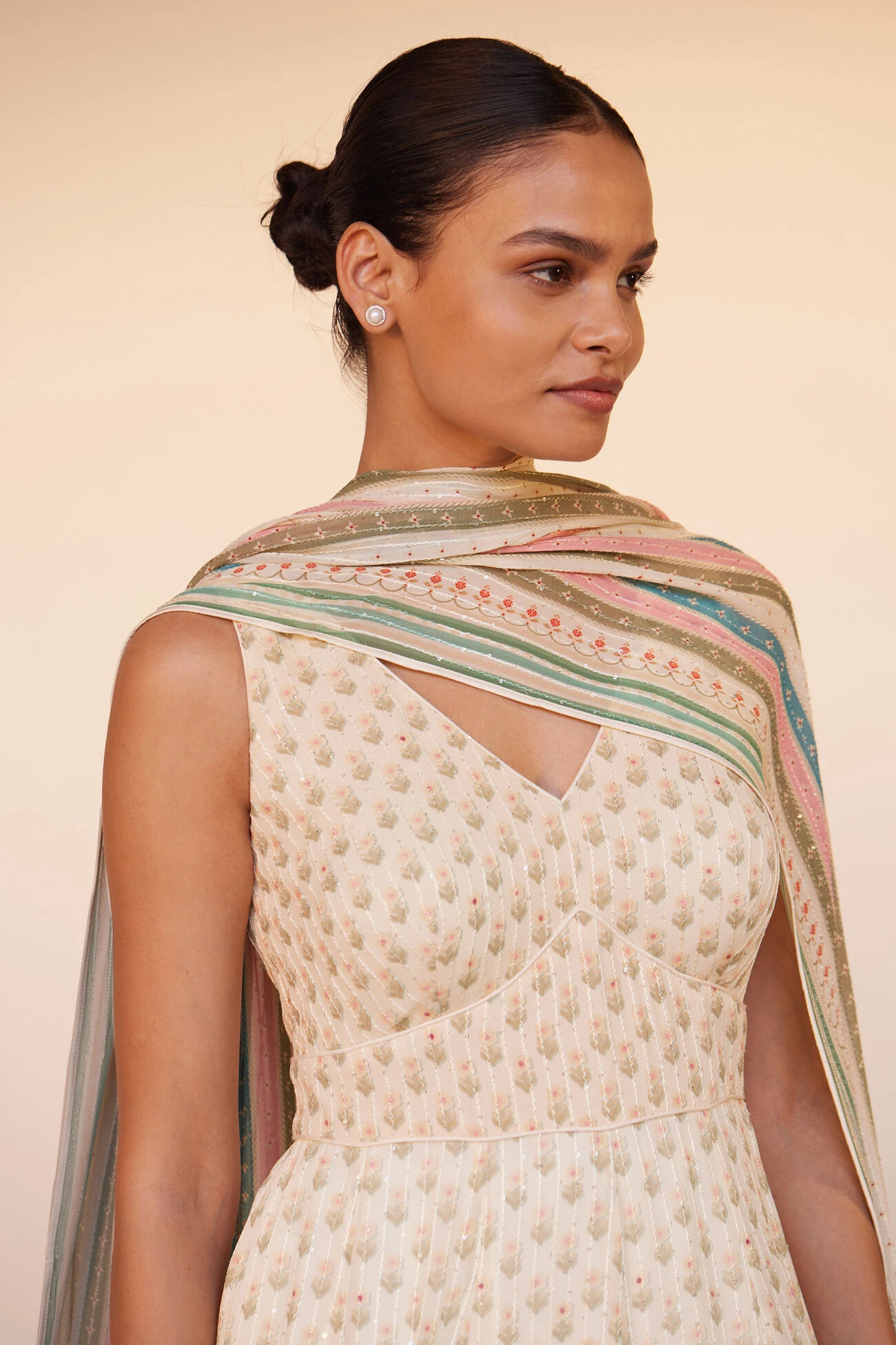 Amala is a classic with hints of contemporary detail. The small floral prints enhance its silhouette, making it an easy choice for lovers of minimalistic elegance.