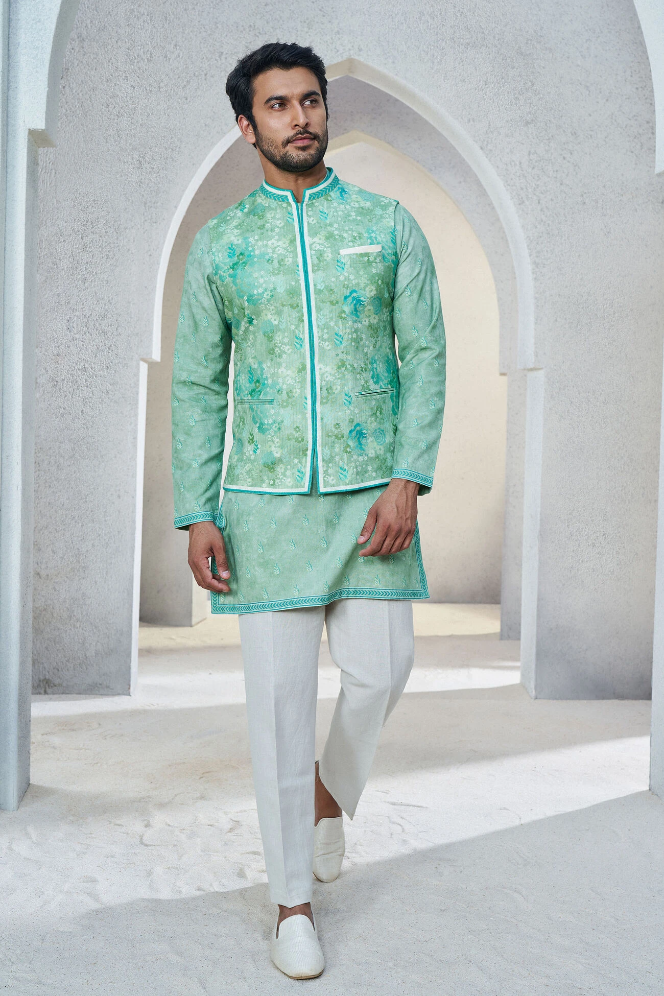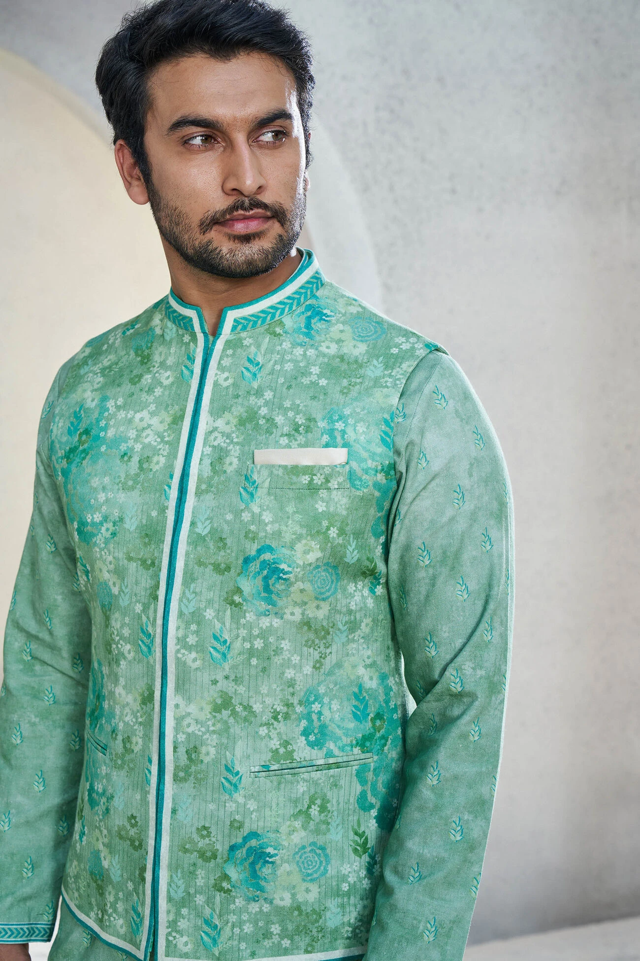 Anay comes in a nature-inspired color palette to refresh your contemporary ensembles. Subtle floral prints elevate its look, making it a great addition to your festive wardrobe.