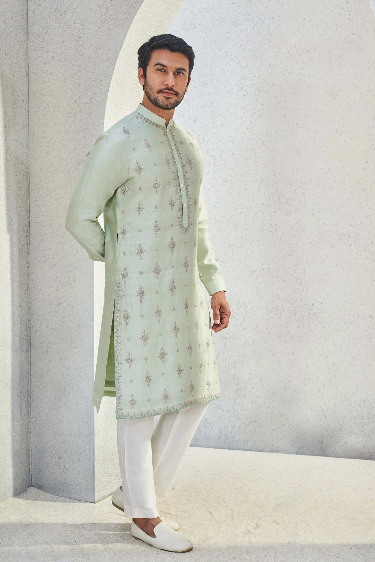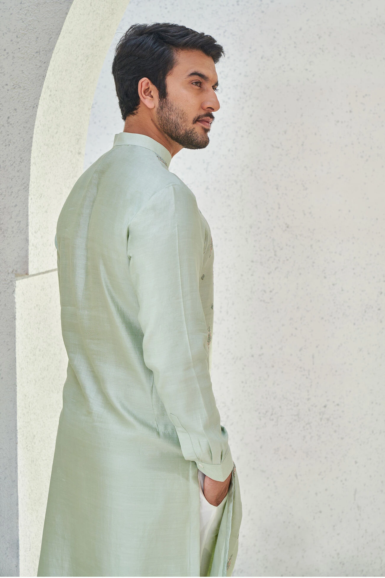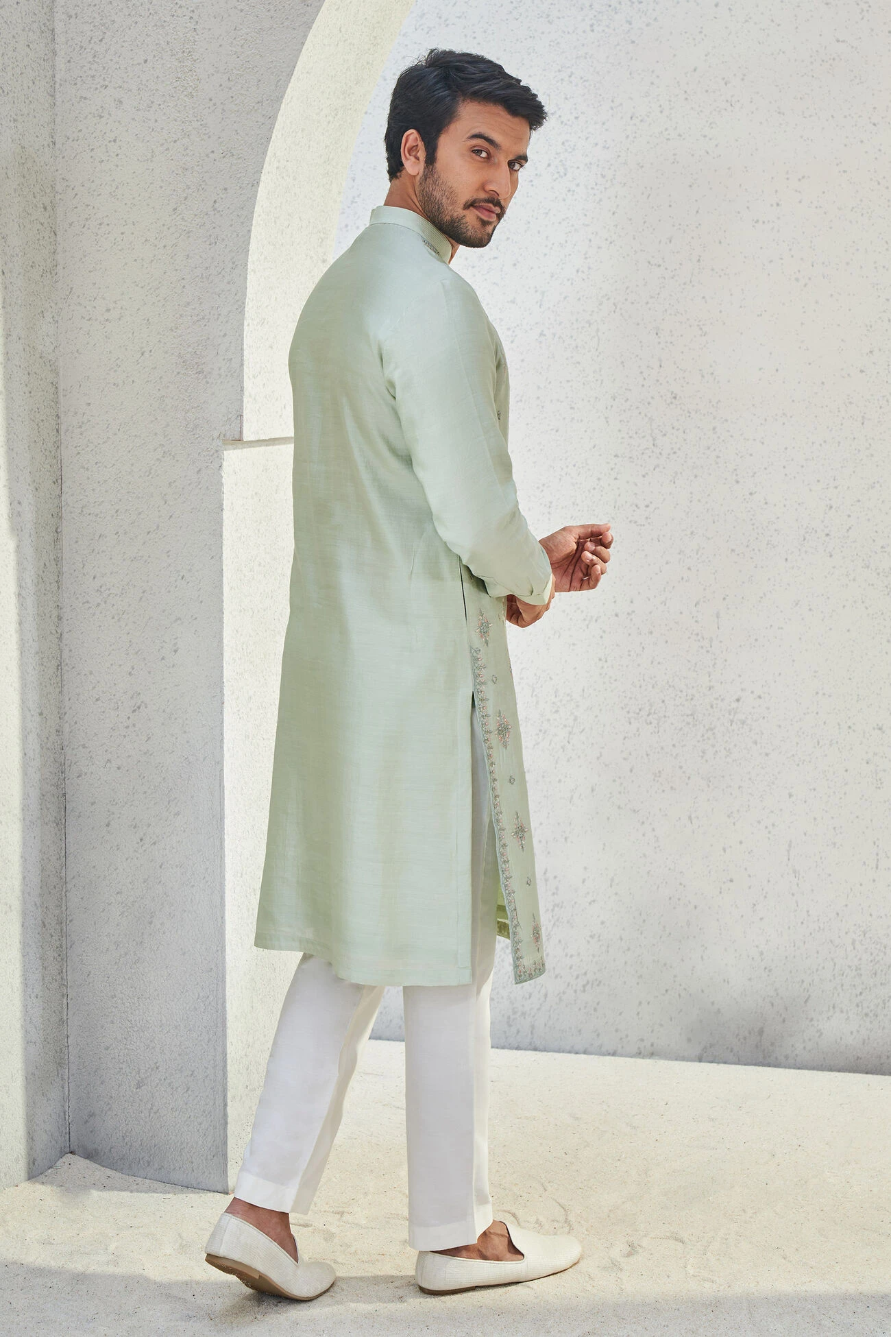 Handwoven with love, Anvit is designed to make you look dapper. The delicately crafted motifs elevate the look of this kurta, making it a festive classic.