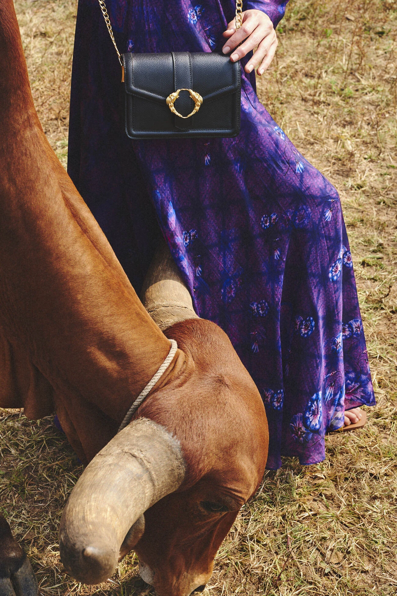A versatile crossbody bag that is consciously crafted from Mirum, a natural material that is entirely plastic free. The statement bird buckle makes it a signature accessory, and it comes with a magnetic closure.