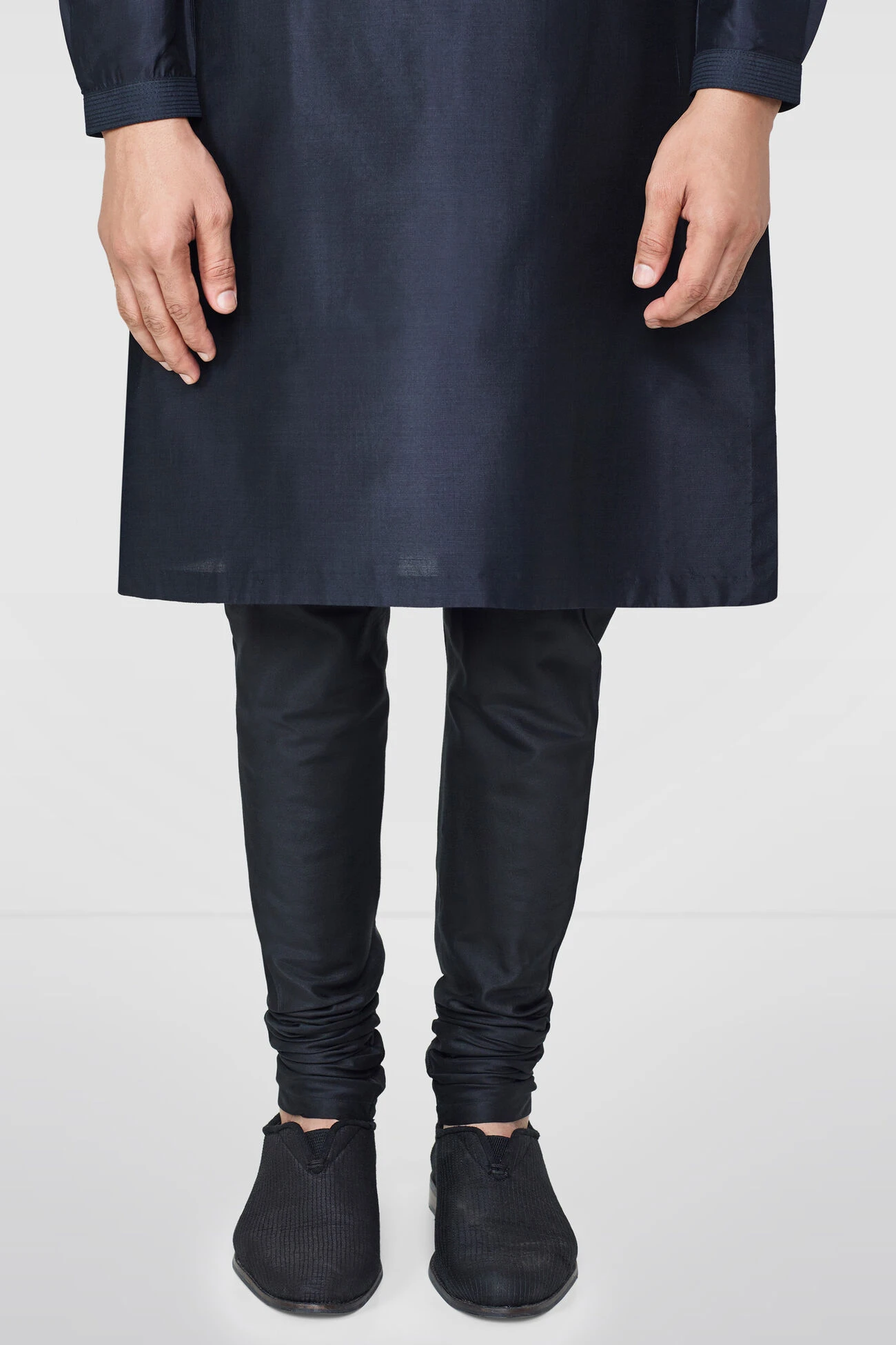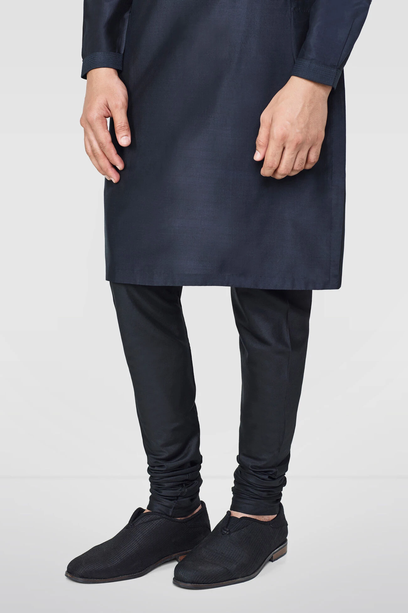 The classic black churidar is made of spun silk. Textured with fine regal woven crafts of India, the churidar is a basic addition to your wardrobe.
