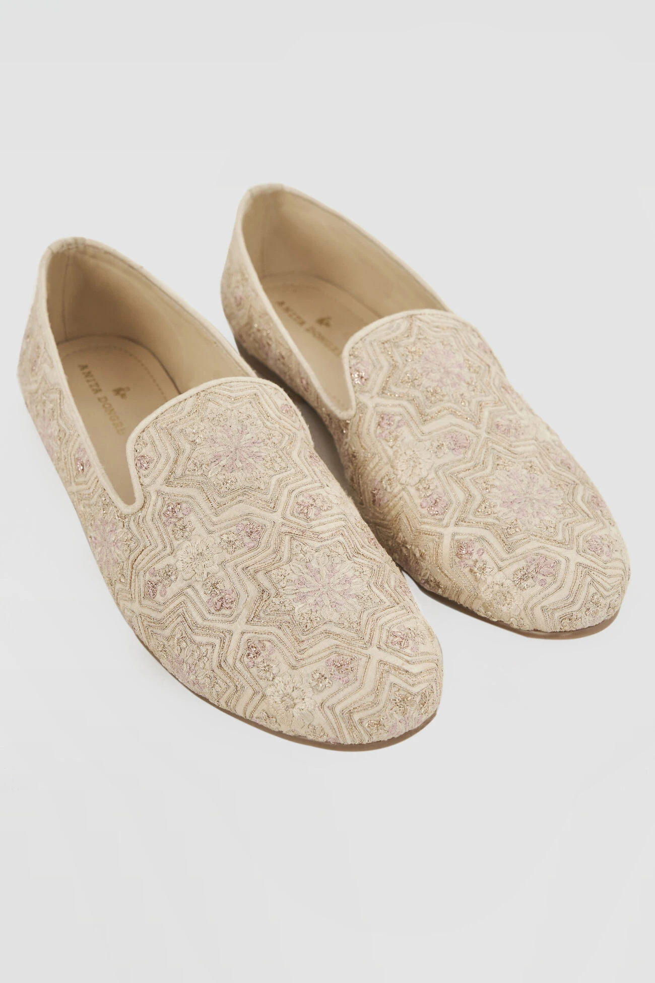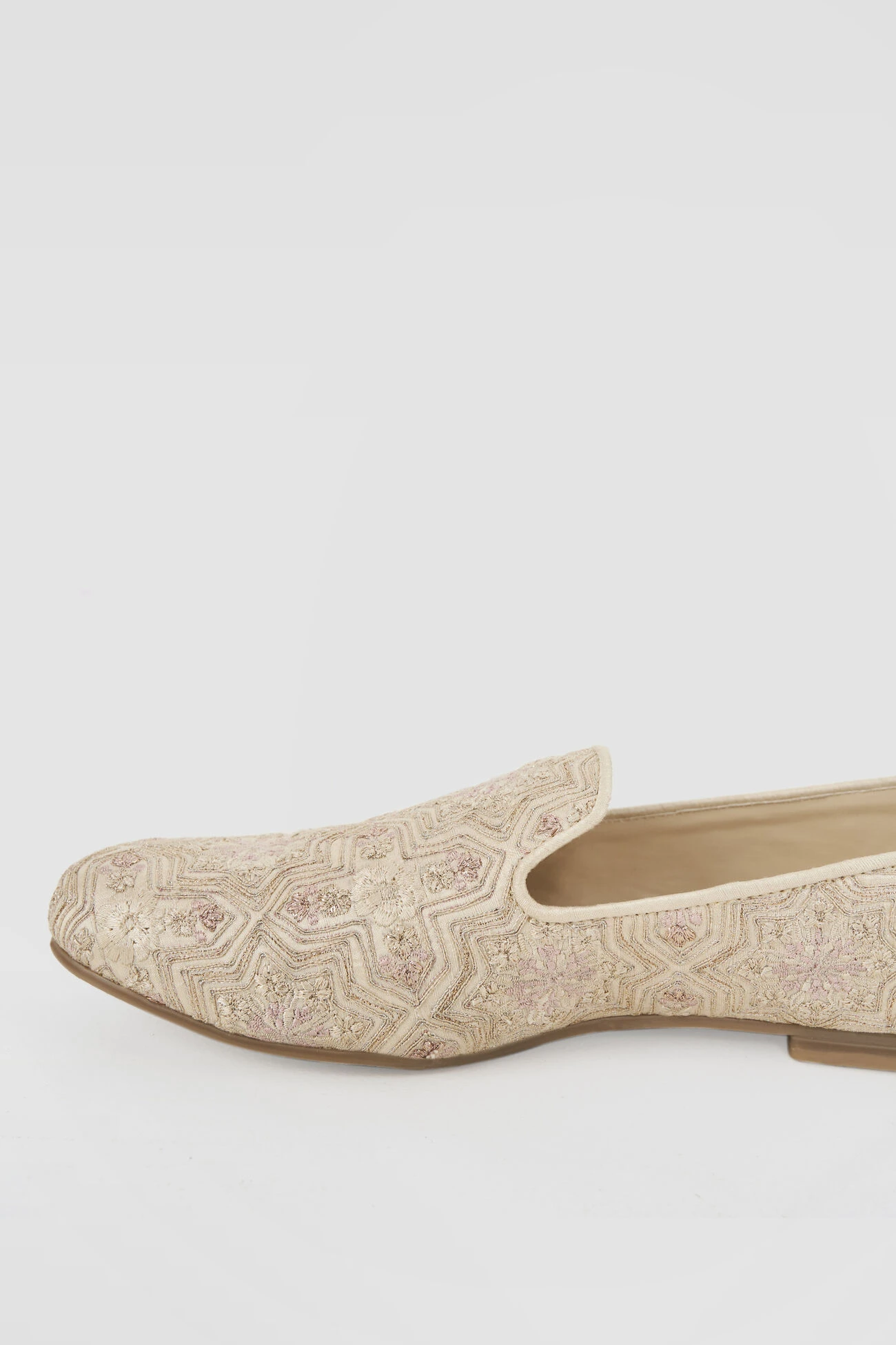Muted shade of Csaba, in addition to the exquisite multi-color embroidery, makes it the perfect accessory. The silk frame of the closed mules shines and completes the look.