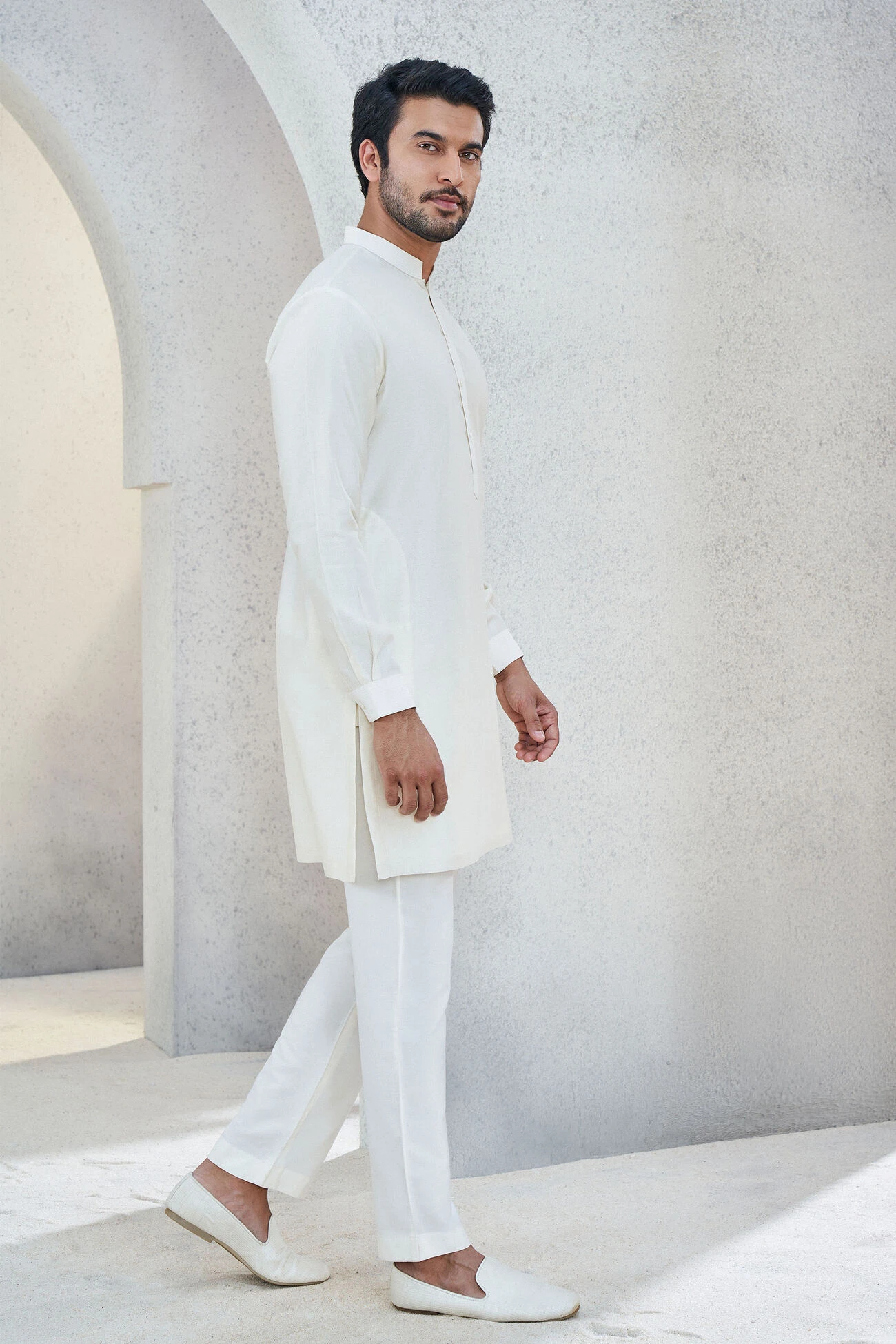 Esam is perfect for daytime celebrations. Handwoven by skilled artisans, this soft and classic kurta will be the perfect addition to your wedding wardrobe.