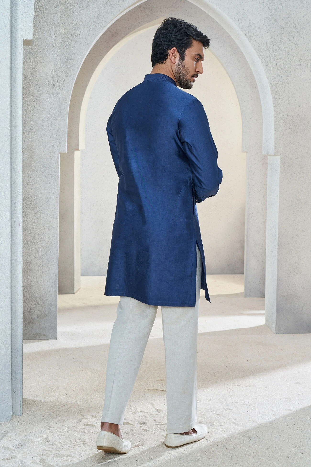 Esam is perfect for daytime celebrations. Handwoven by skilled artisans, this soft and classic kurta will be the perfect addition to your wedding wardrobe.