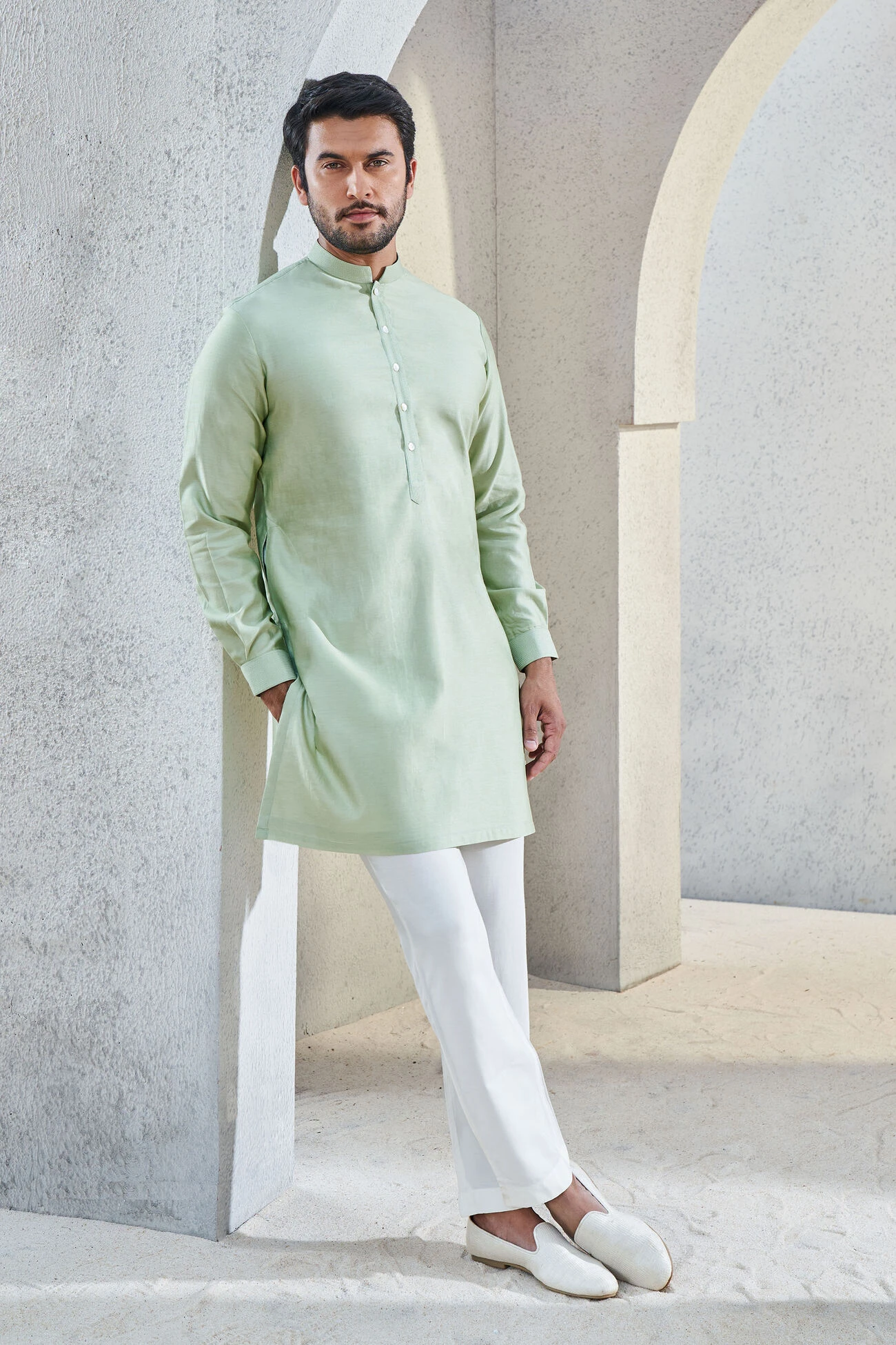 Esam is perfect for daytime celebrations. Handwoven by skilled artisans, this soft and classic kurta will be the perfect addition to your wedding wardrobe.