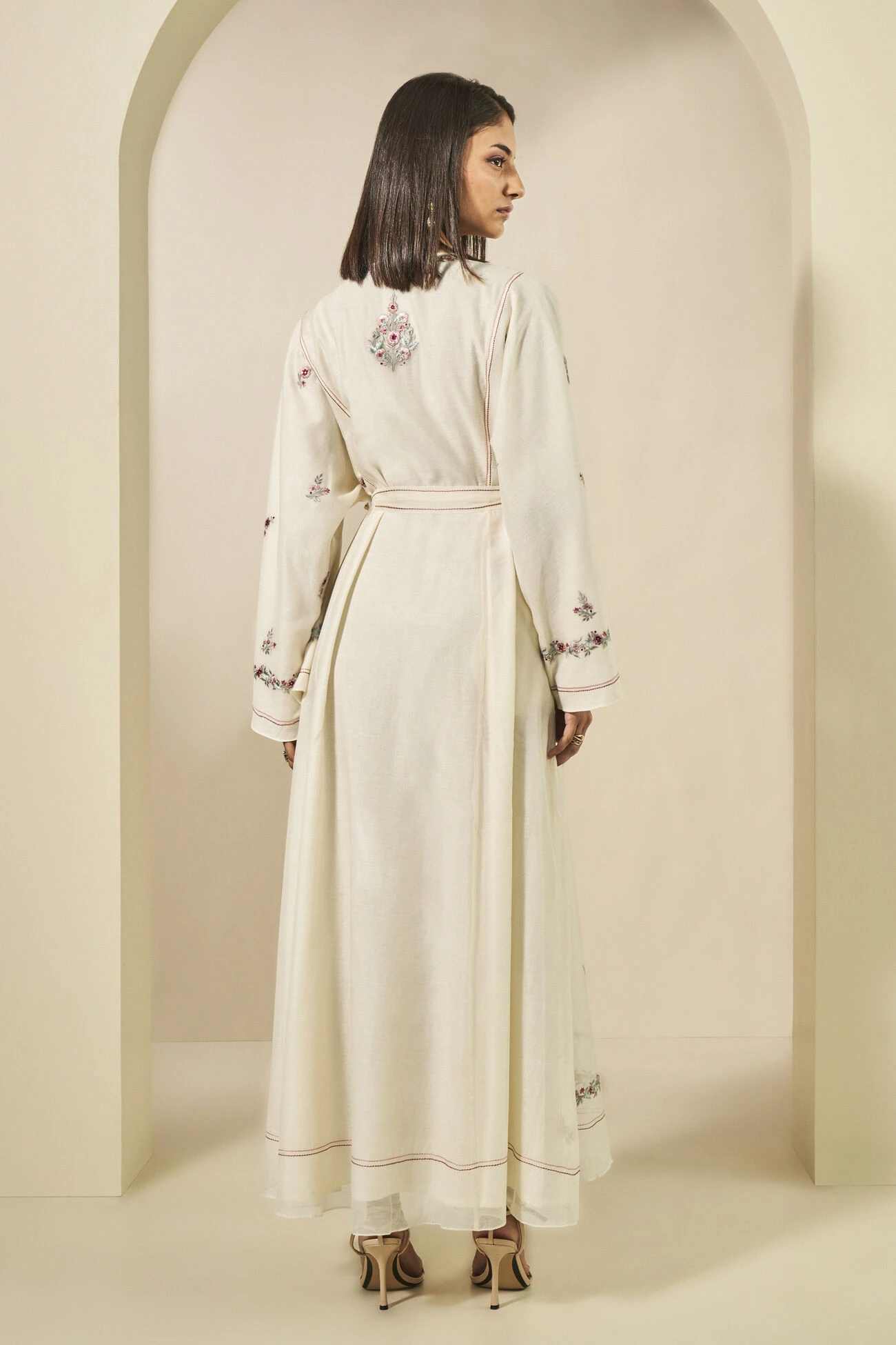A breezy outfit in a subtle hue featuring blooming florals. Evalie is perfect for daytime celebrations and comes with a fabric belt.