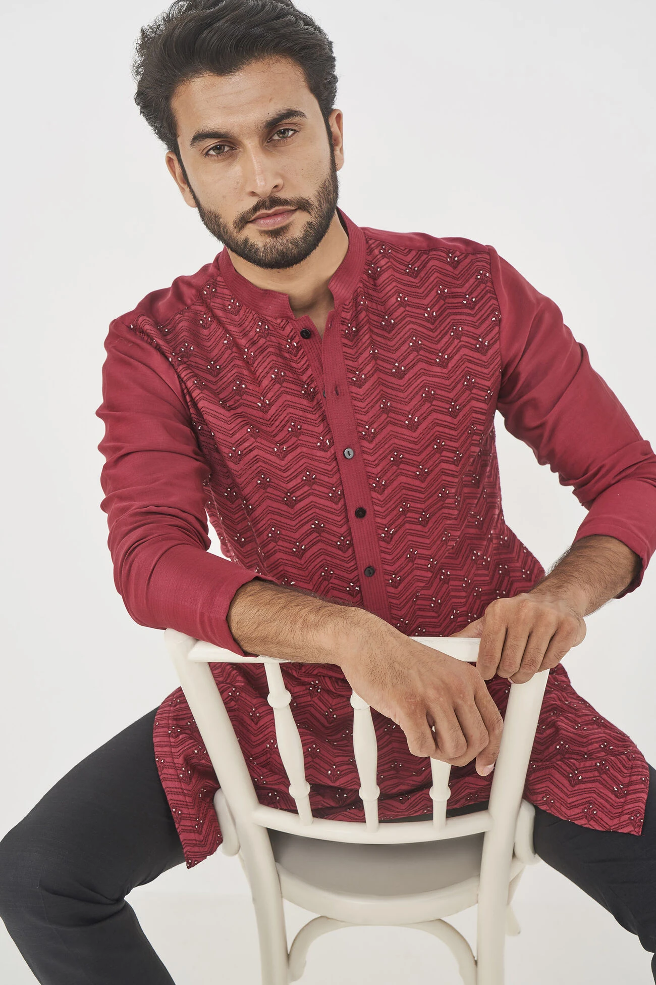 We’ve raised the bar on all-season, all-occasion classic piece with our Gulzar kurta in maroon. This cotton-silk kurta, covered in subtle embroidery, is the elegant, stylish staple you cannot live without.