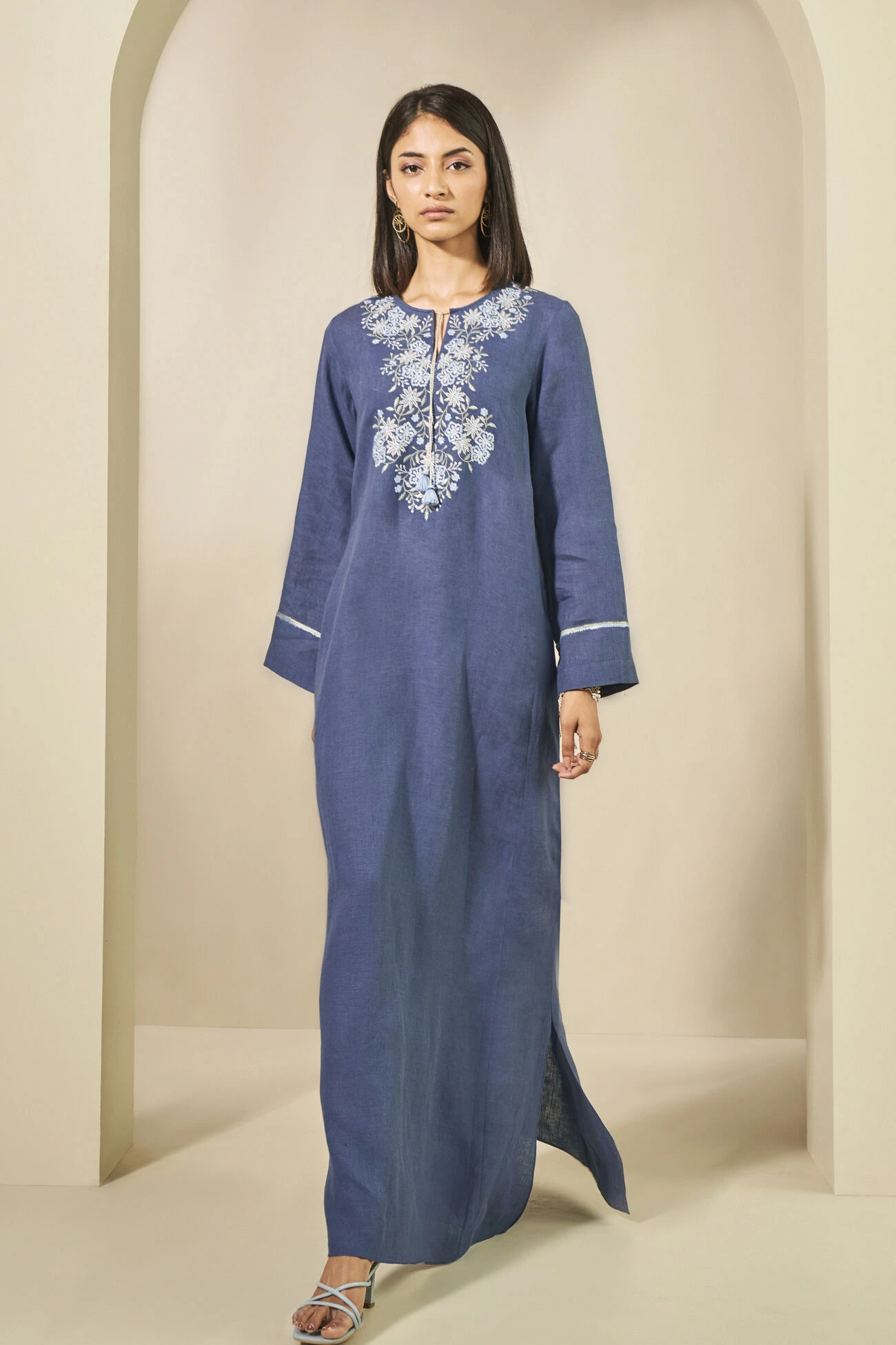Crafted from linen, Hyacinth is deliciously soft and flowy. A timeless kaftan that exudes subtle elegance.