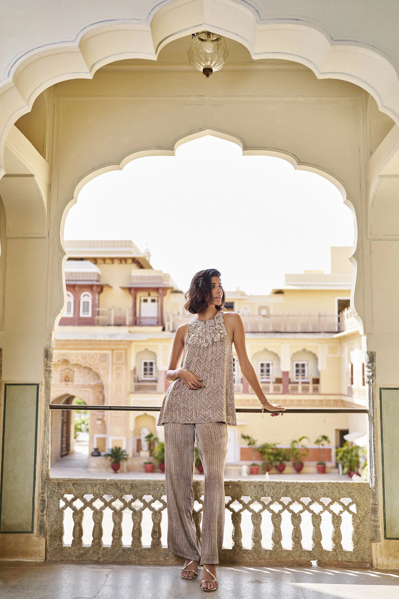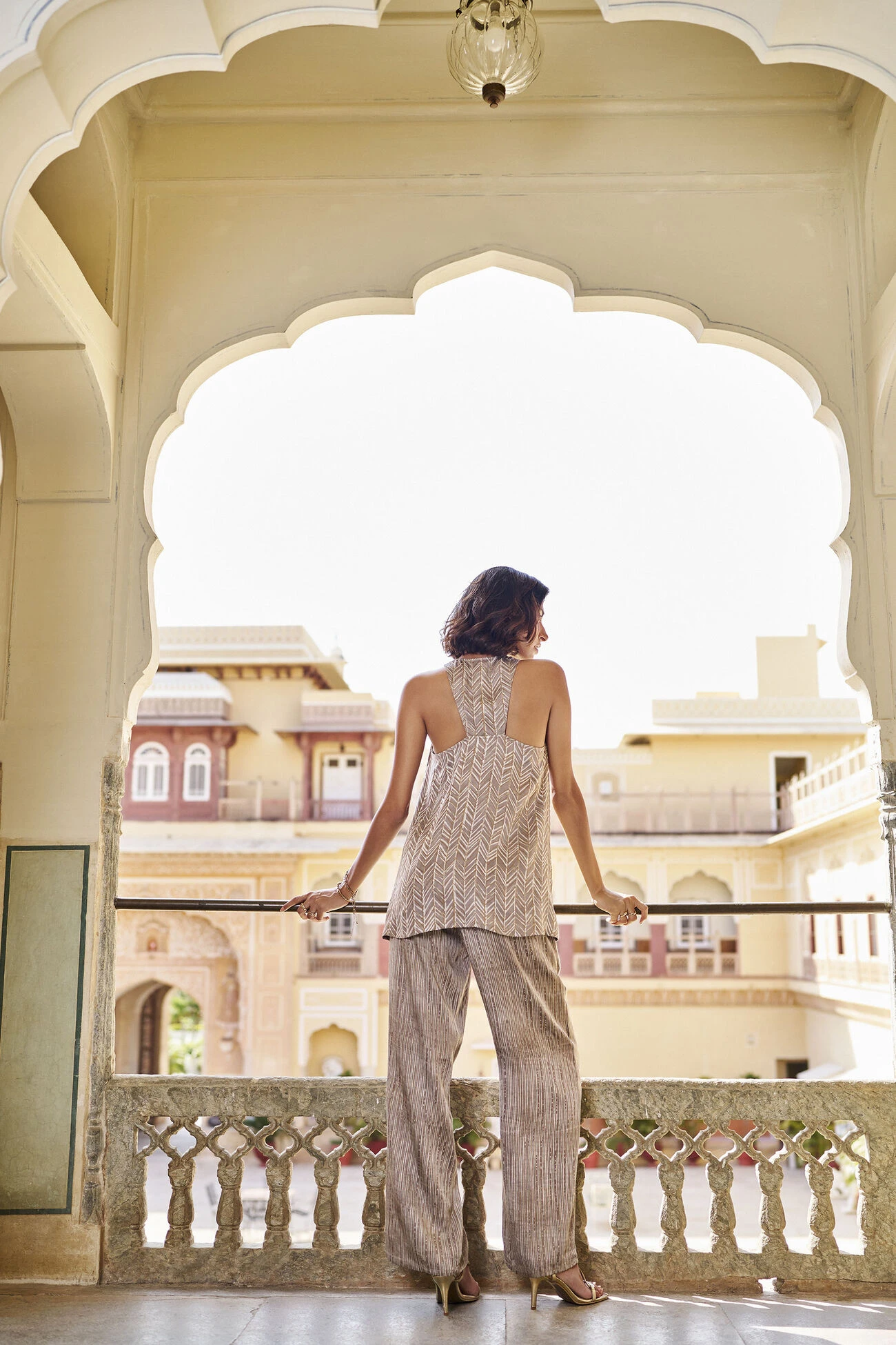 Hand block print with gold khadi.