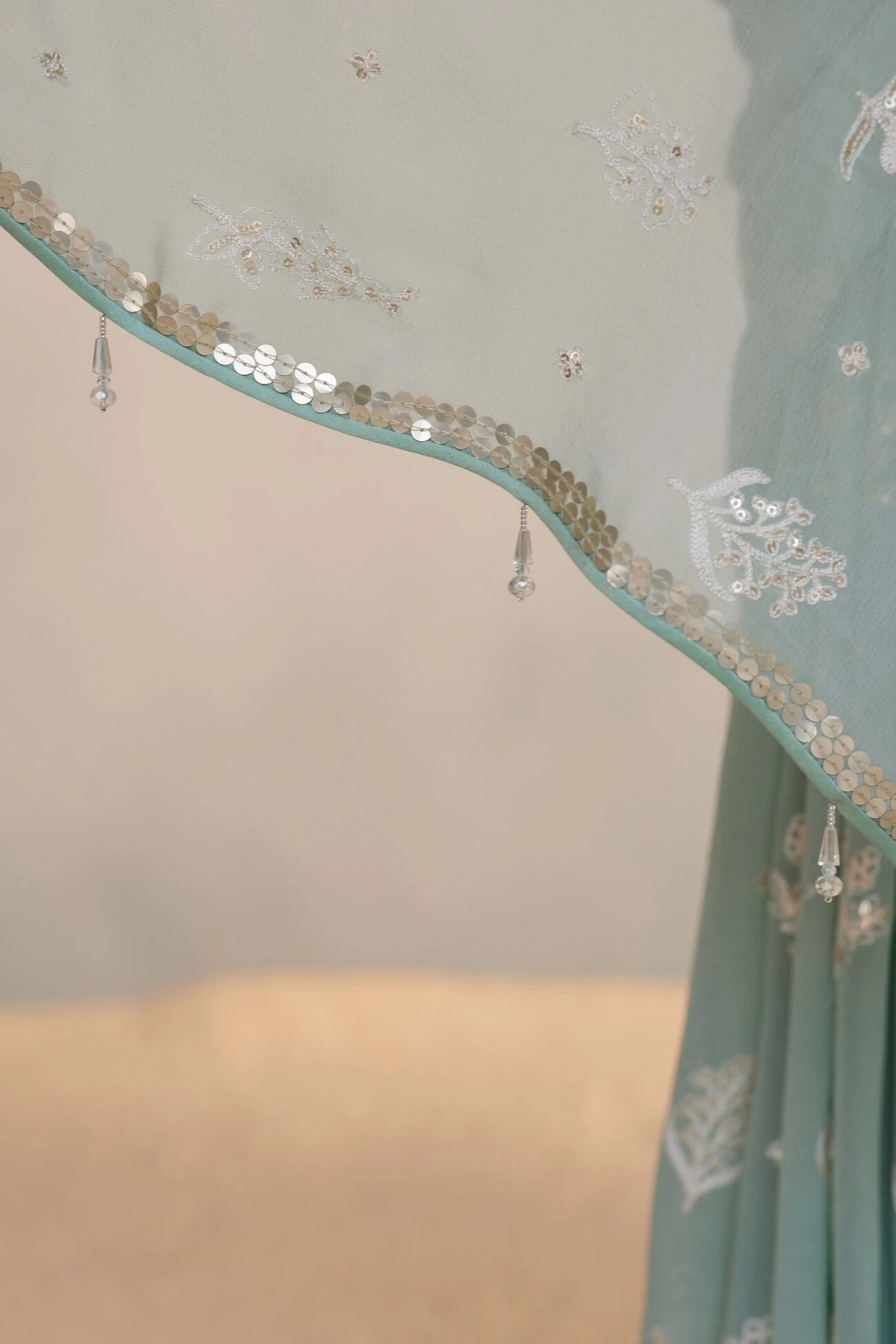 Thread and sequin embroidery.