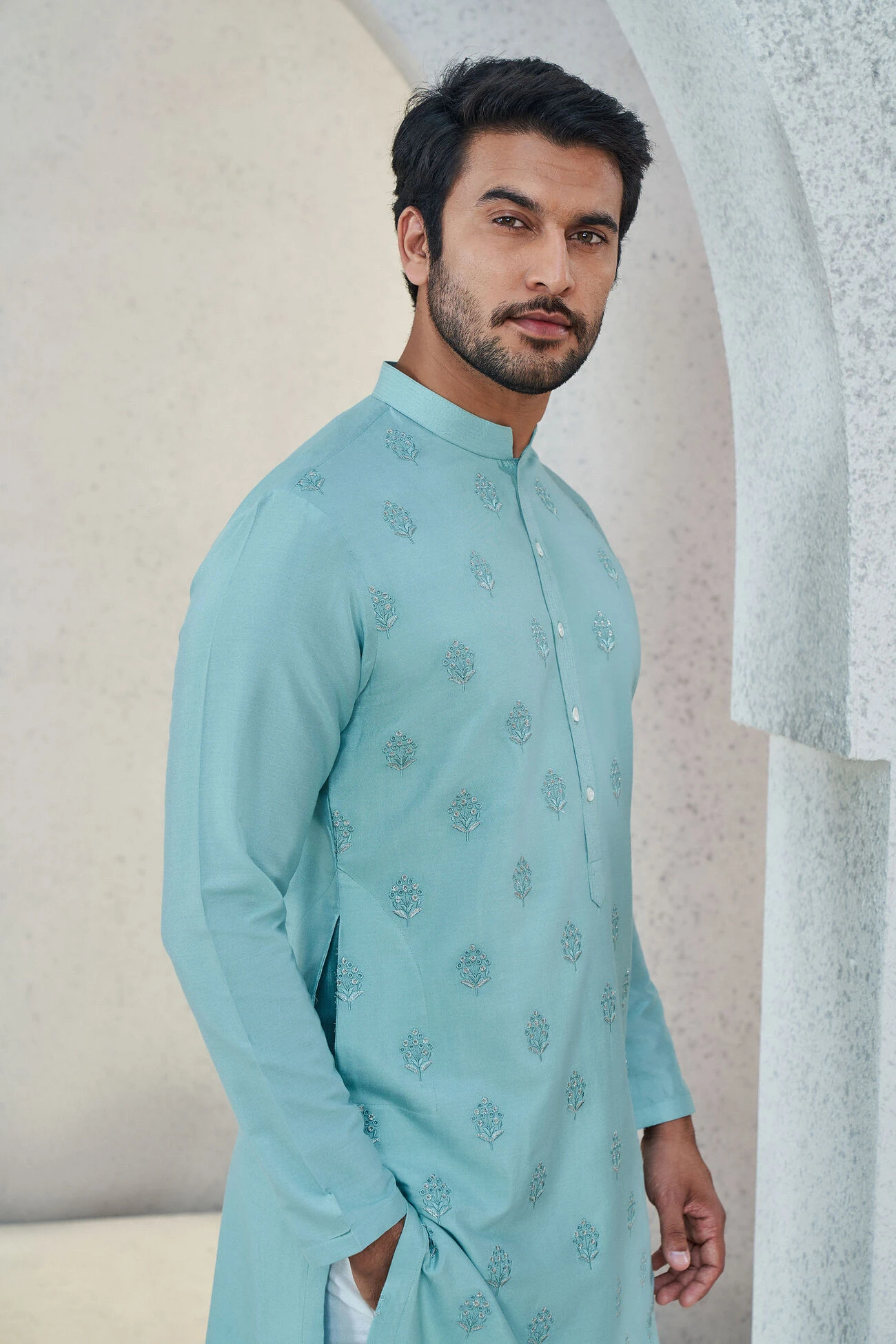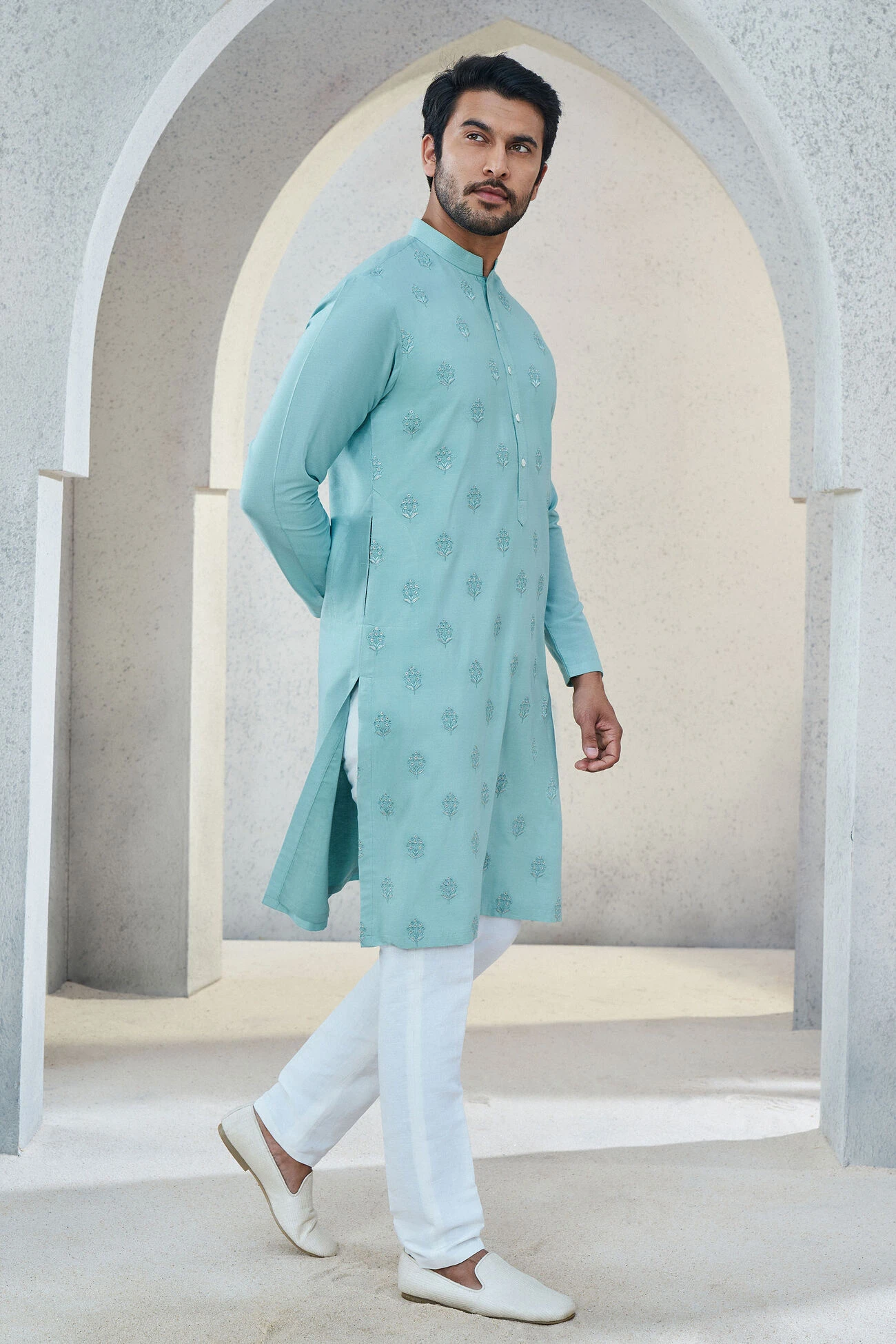 A classic kurta that is elevated with tonal embroidery. Iyad is a versatile wear that can be styled in a multitude of ways.