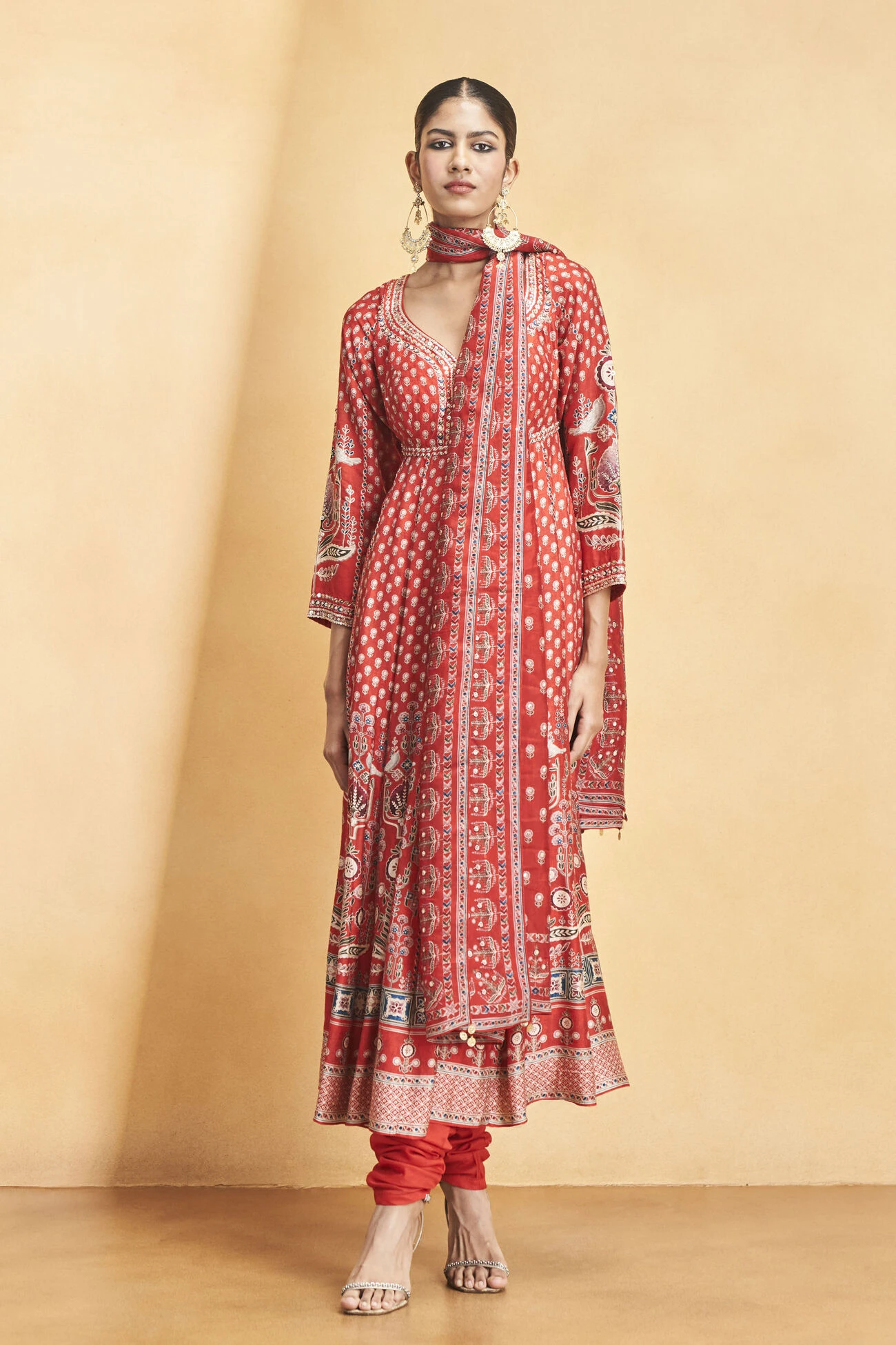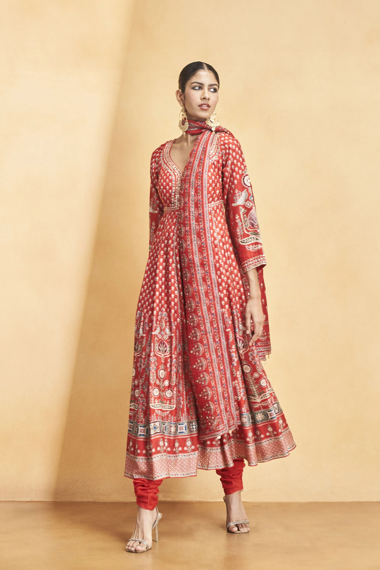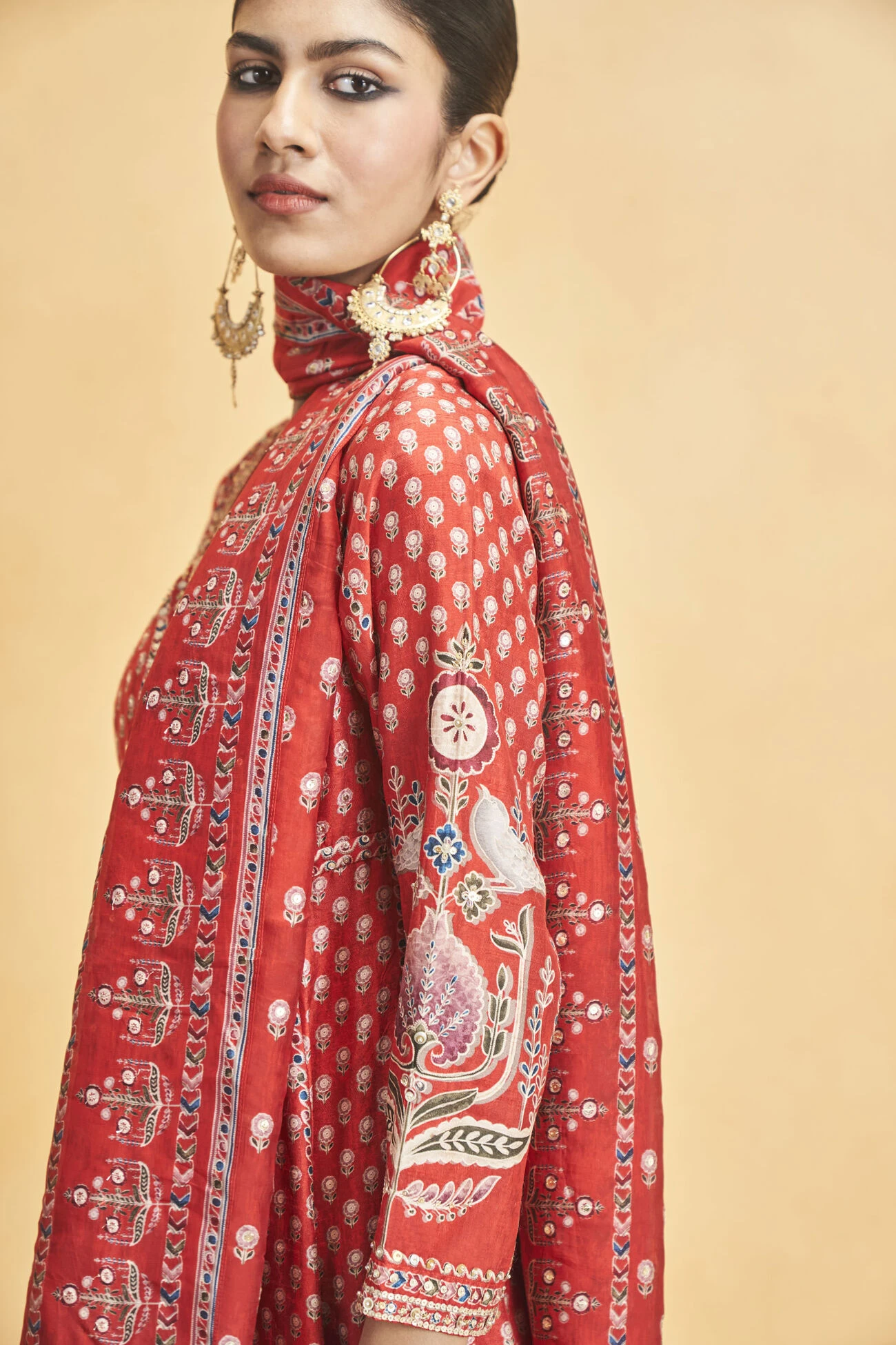 Dive into the season of celebrations with Naima. Featuring palatial motifs and garden-esque blooms in a gleaming silhouette.
