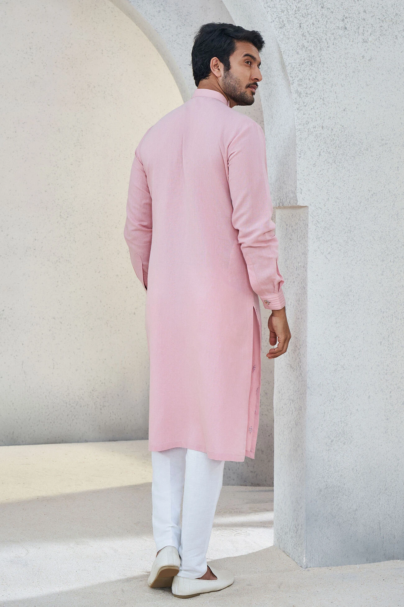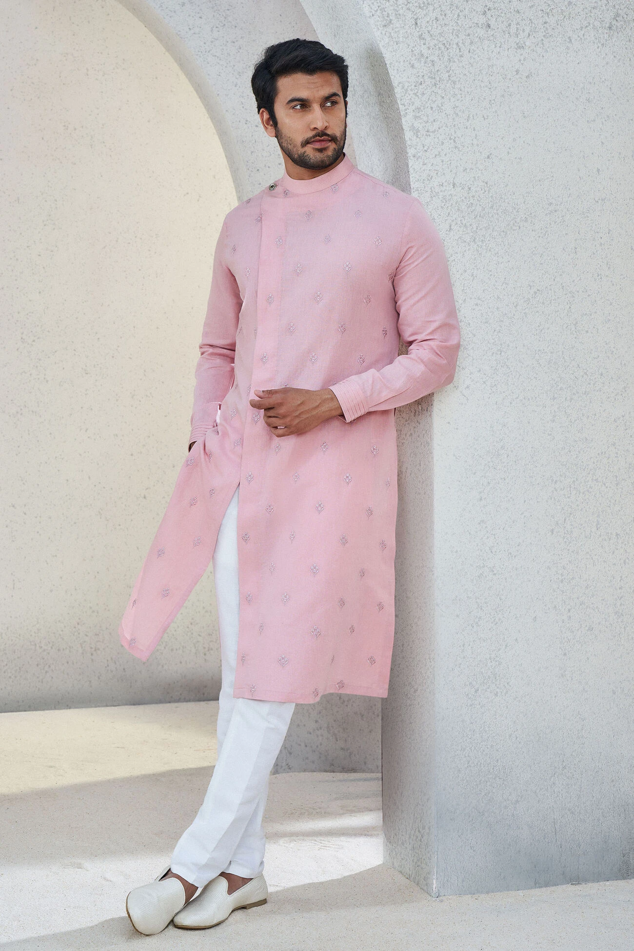 With its soothing tone, the Naksh kurta is perfect for summertime soirees. The distinguished yet detailed frame of this kurta makes it a great addition to your wardrobe.