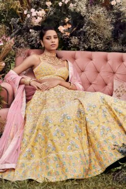 Hand embroidered by rural women artisans, the Naomi Lehenga is both an expression of femininity and empowerment that endeavours to bring employment back to the villages of India. Featuring our signature gota patti along with the decadence of dori, pearl, zardosi, sequins, and zari.