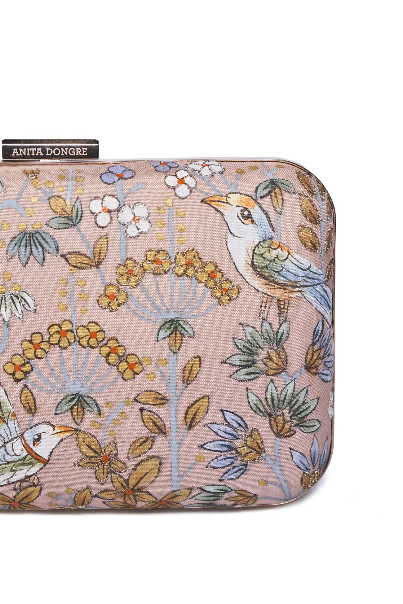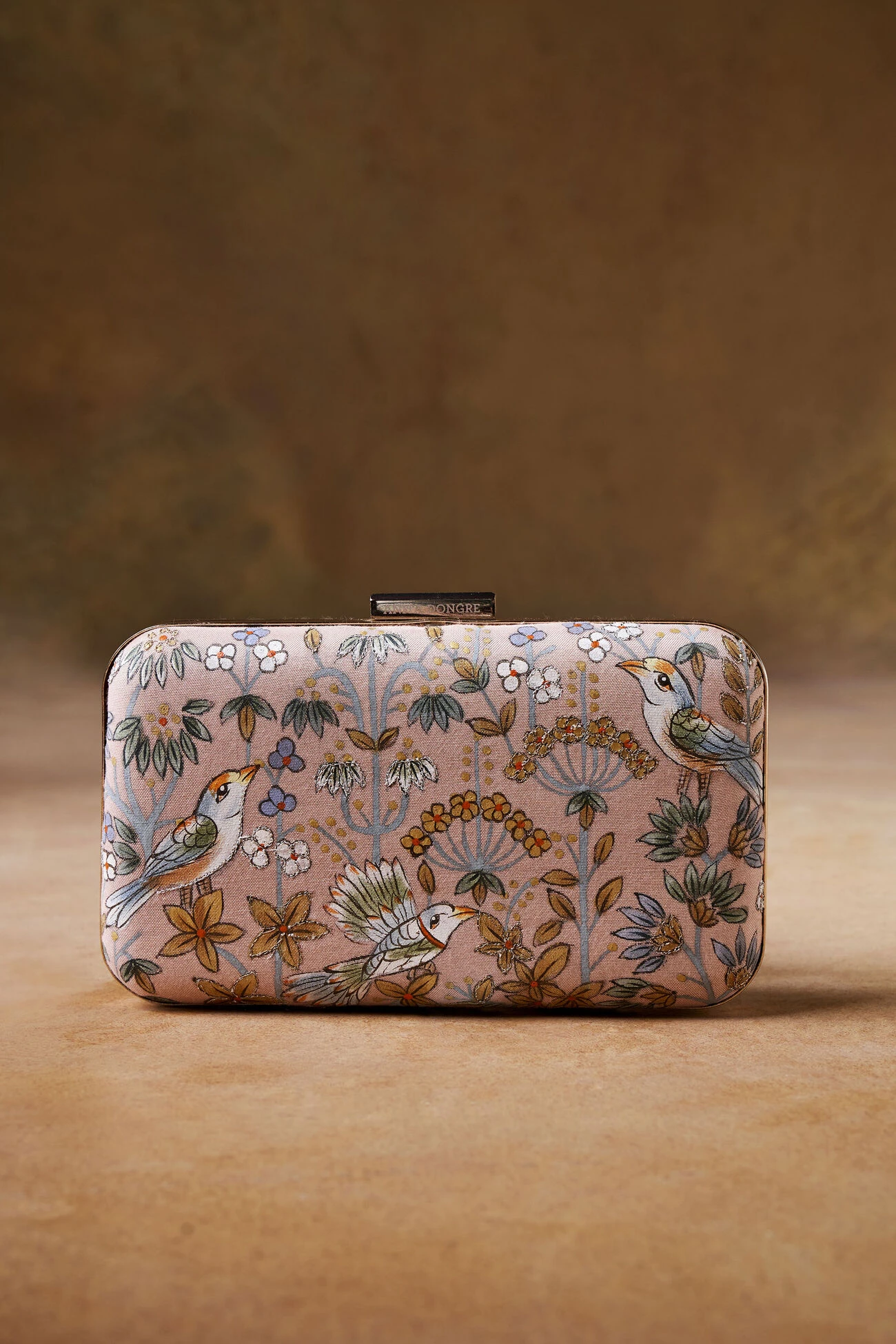 A clutch designed by master artisans keeping alive the 400-year-old legacy of Pichhwai. Crafted with a nature-inspired palette in mind. This cruelty-free accessory comes with a clasp closure.
