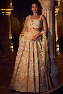 Subtle but not shy, our Pranayi Lehenga Set features geometric motifs on sustainable organza. Perfect for elegant daytime events, and for glamourous nights, this is a versatile set that can be styled to suit any dress code.