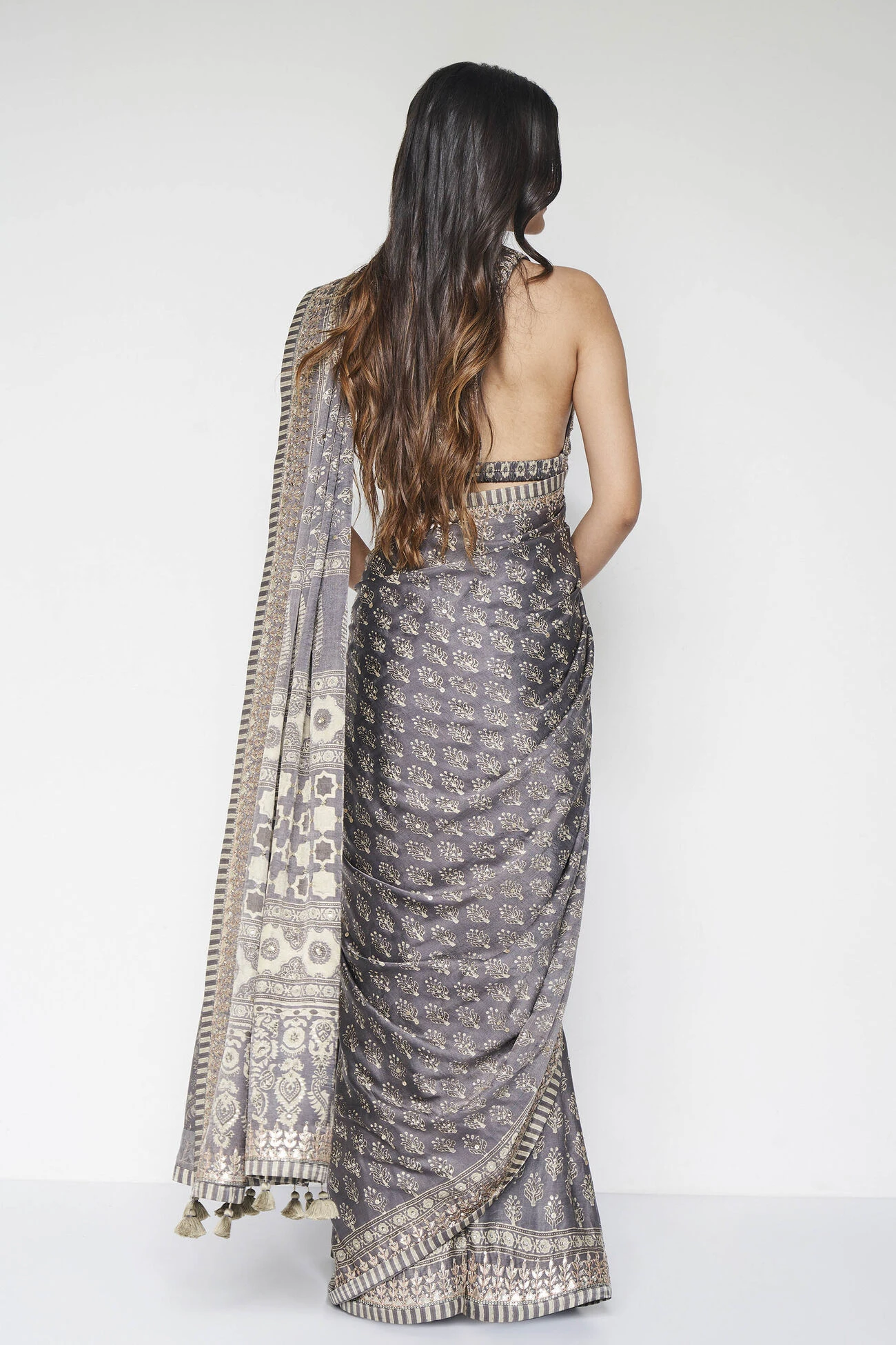 The choli shown on model is for style only.