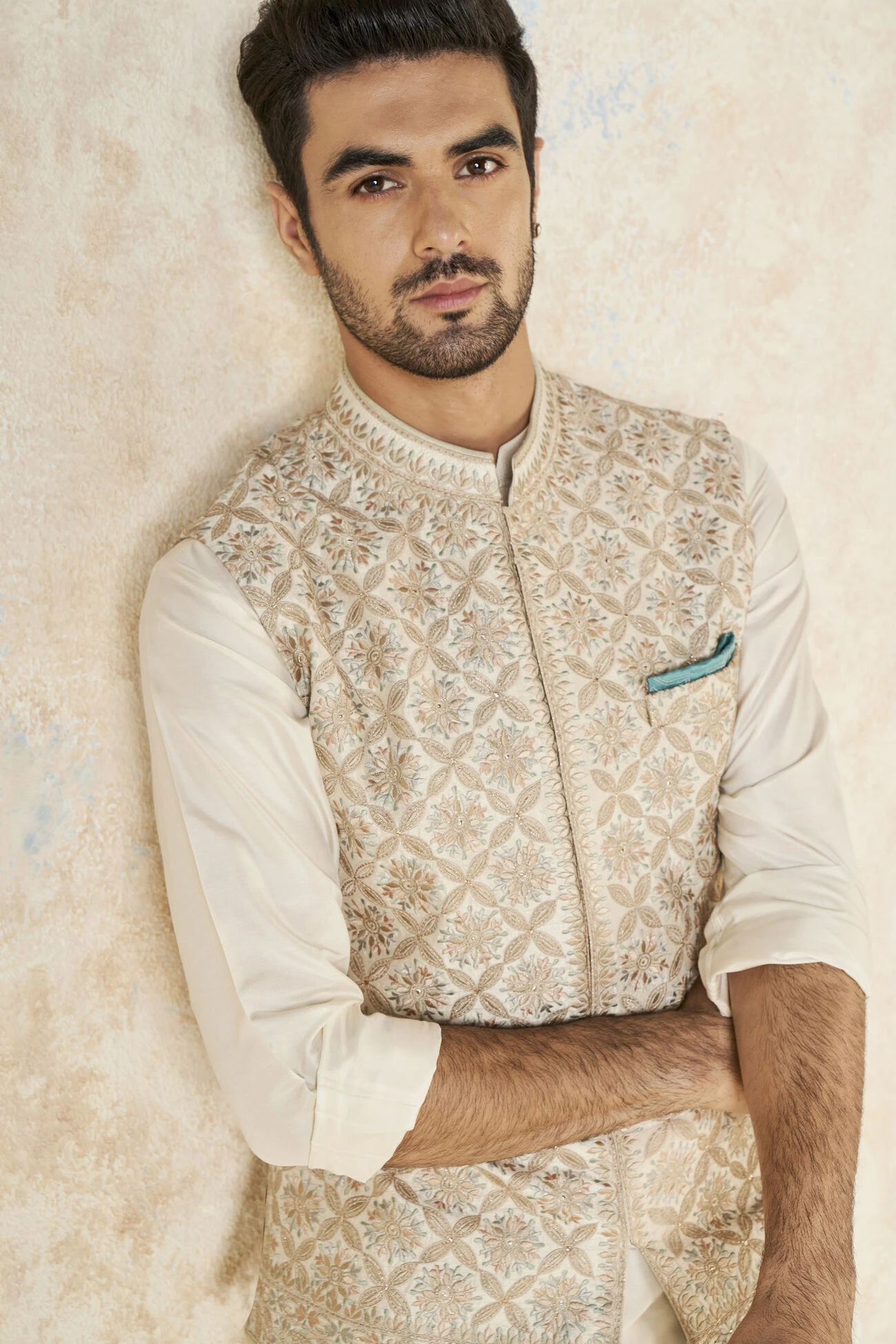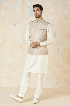 Inspired by architectural motifs, the Rayan Nehru jacket is a great addition to your festive wardrobe. Pair it with a range of kurtas to create dapper looks.