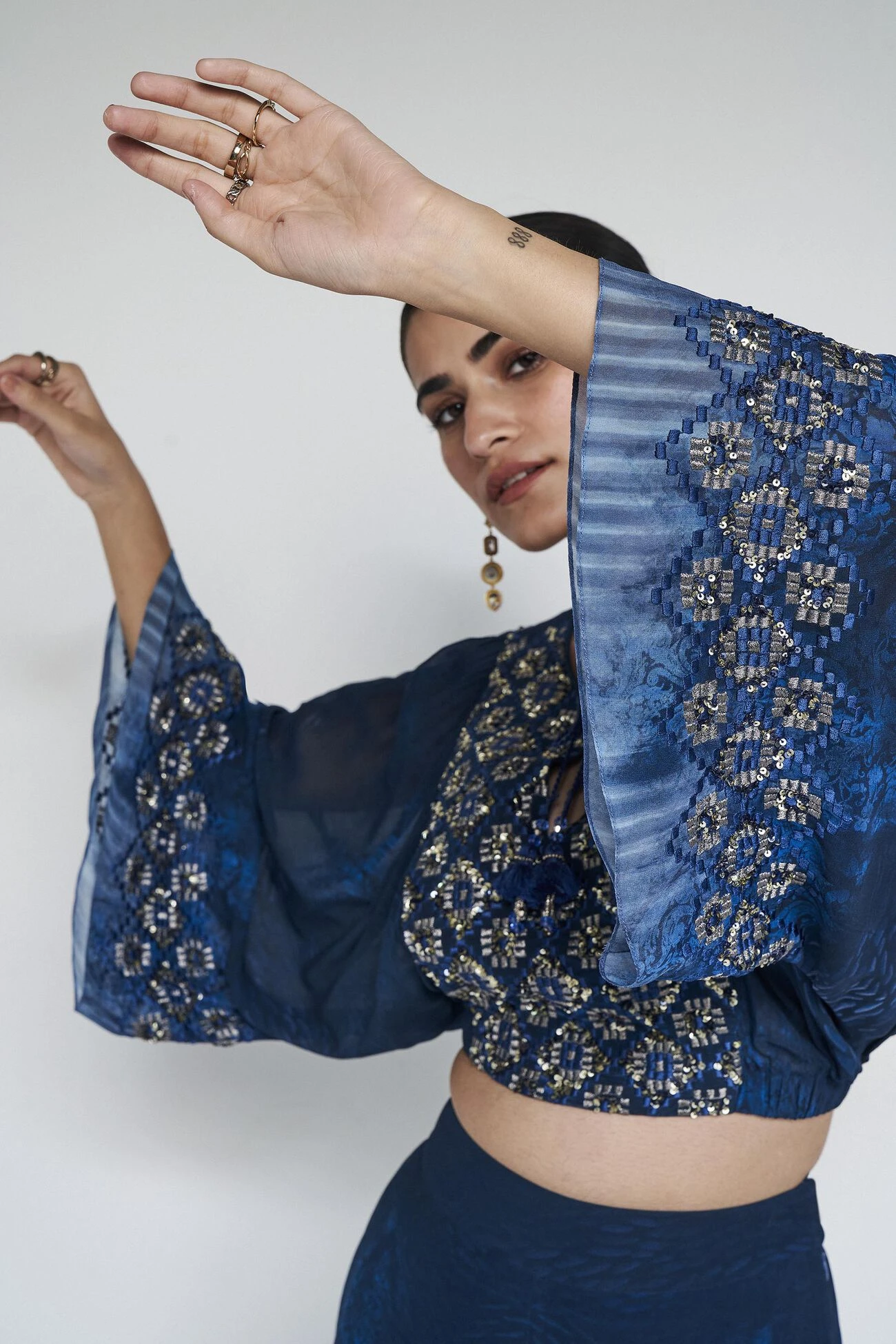 Thread and sequin embroidery.