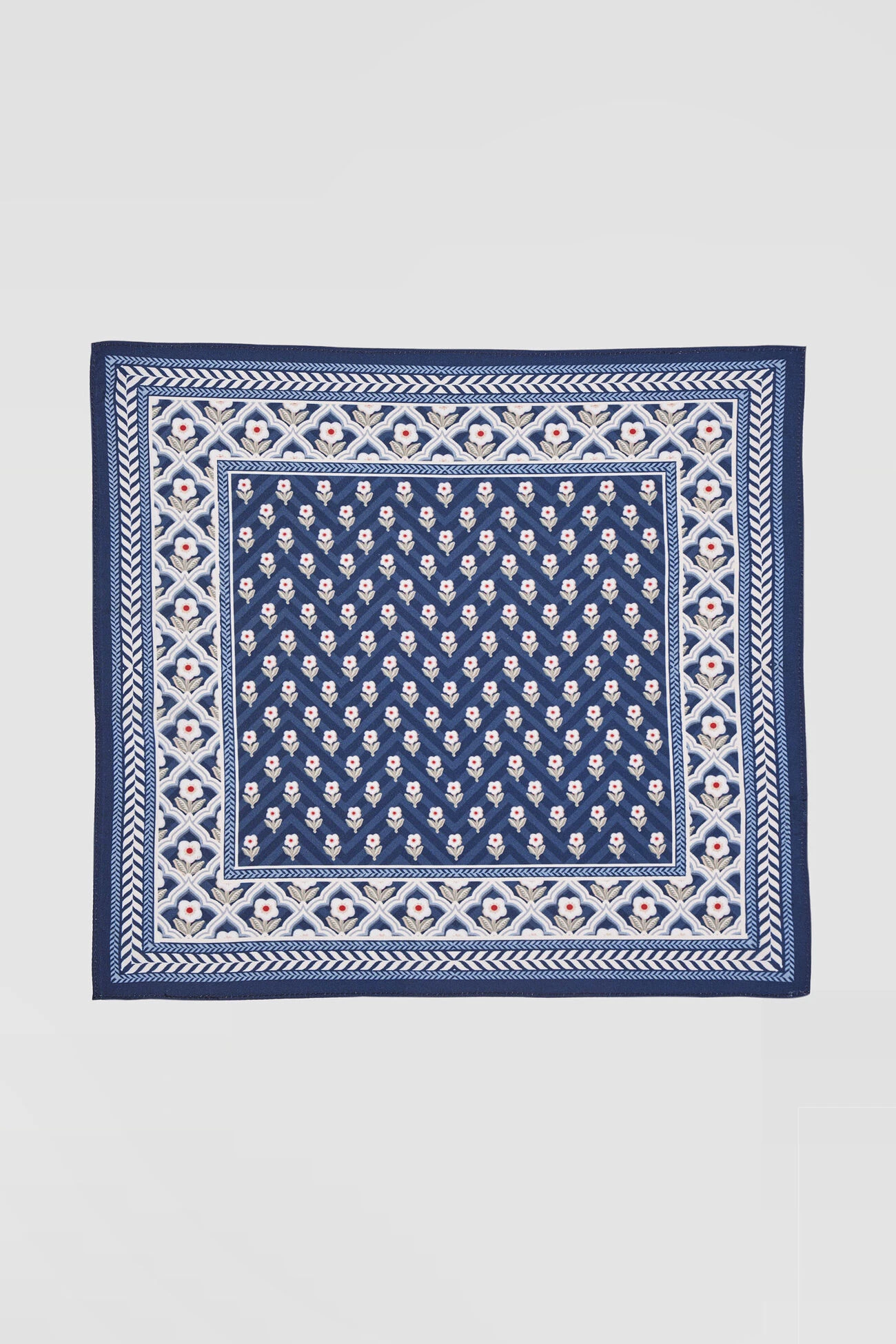 Ryaan pocket square in navy features our signature floral print. It is a must-have accessory for stylish men.