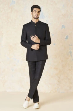 Make a statement in Safee. A classic black bandhgala crafted from silk that is perfect for soirees and celebrations.