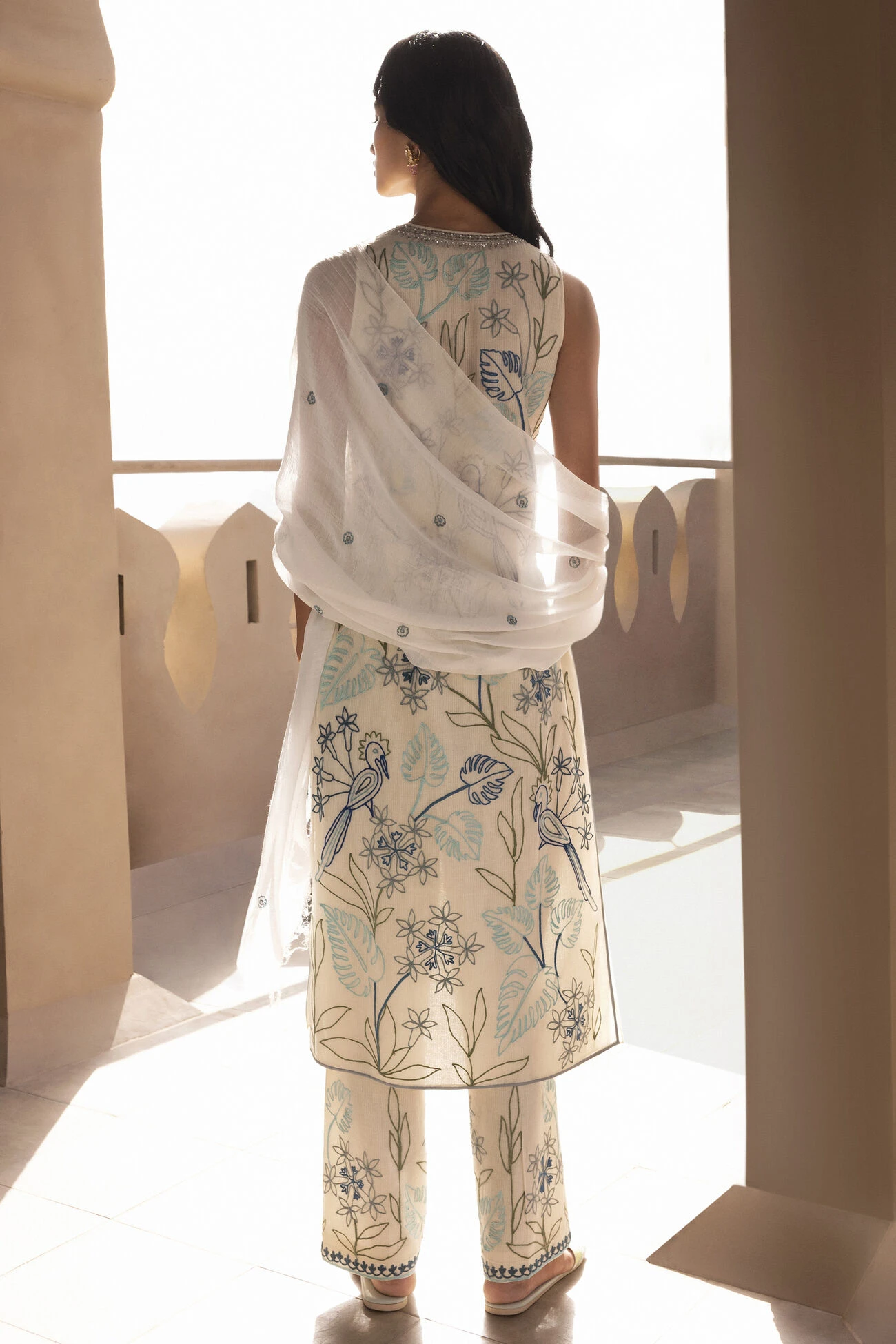 Our Sanoh kurta set is a wardrobe treasure, handcrafted by SEWA weavers. Perfect for outdoor celebrations as it features bold floral patterns in a low-key shade plus, the finely-cut neckline and effortless look steals the limelight. Also, it comes with pockets.