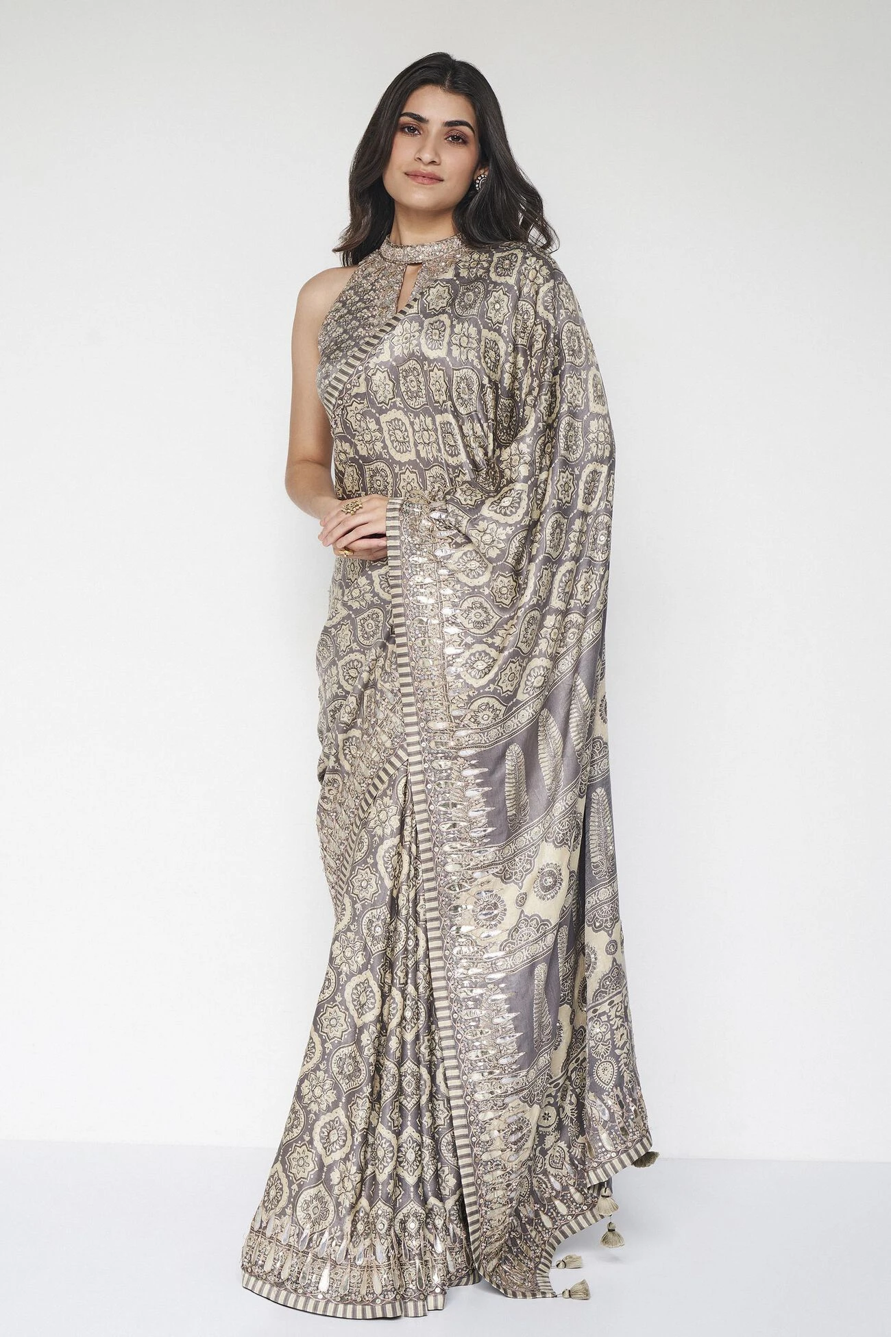 The choli shown on model is for style only.