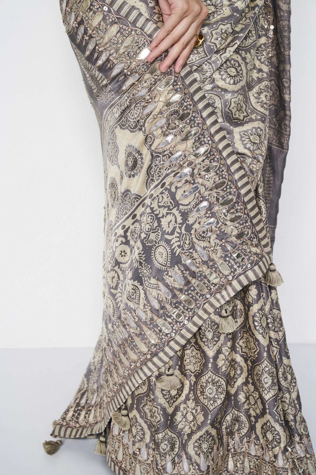 Gota patti, zardozi and sequin embroidery.
