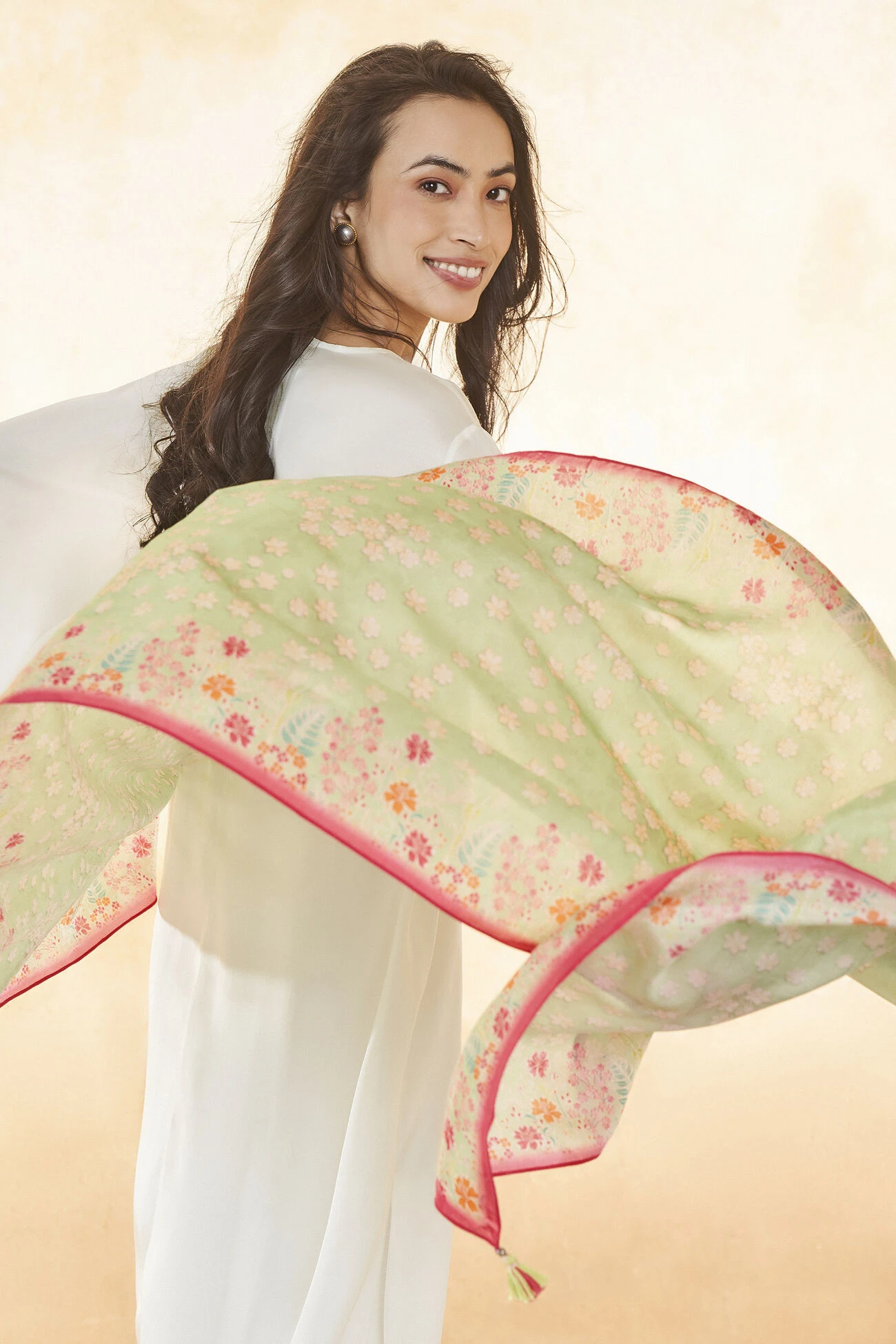 Shyla features delicate, nature-inspired prints in a soothing color palette for summer soirees.