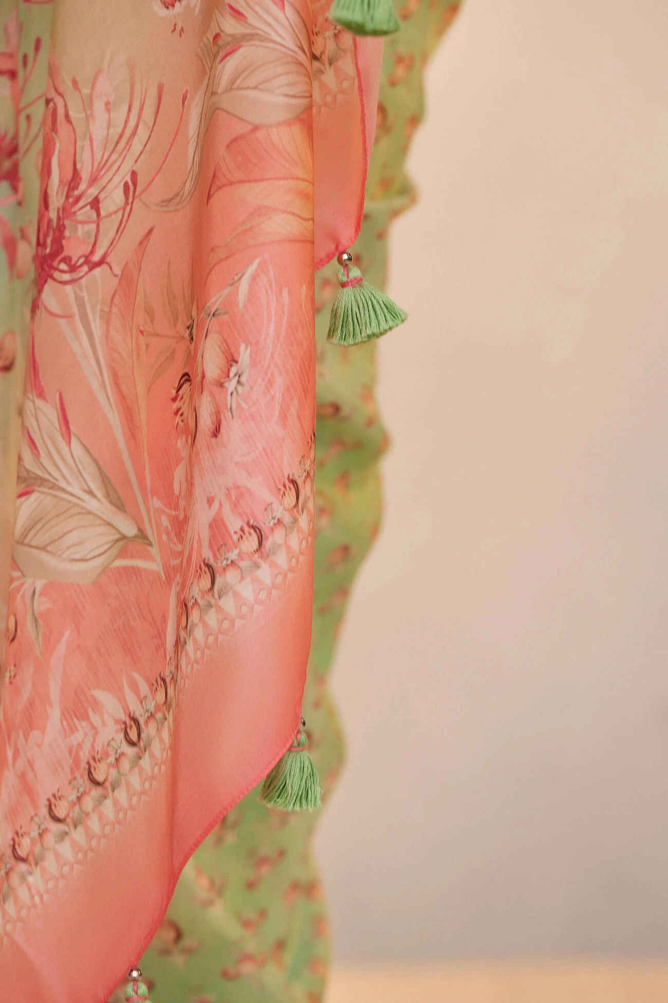 Shyla in a soothing color palette is perfect for summer soirees. Light as air and breezy, it features delicate nature-inspired prints.