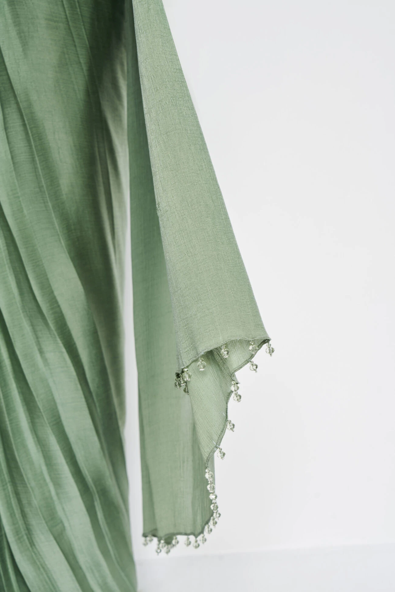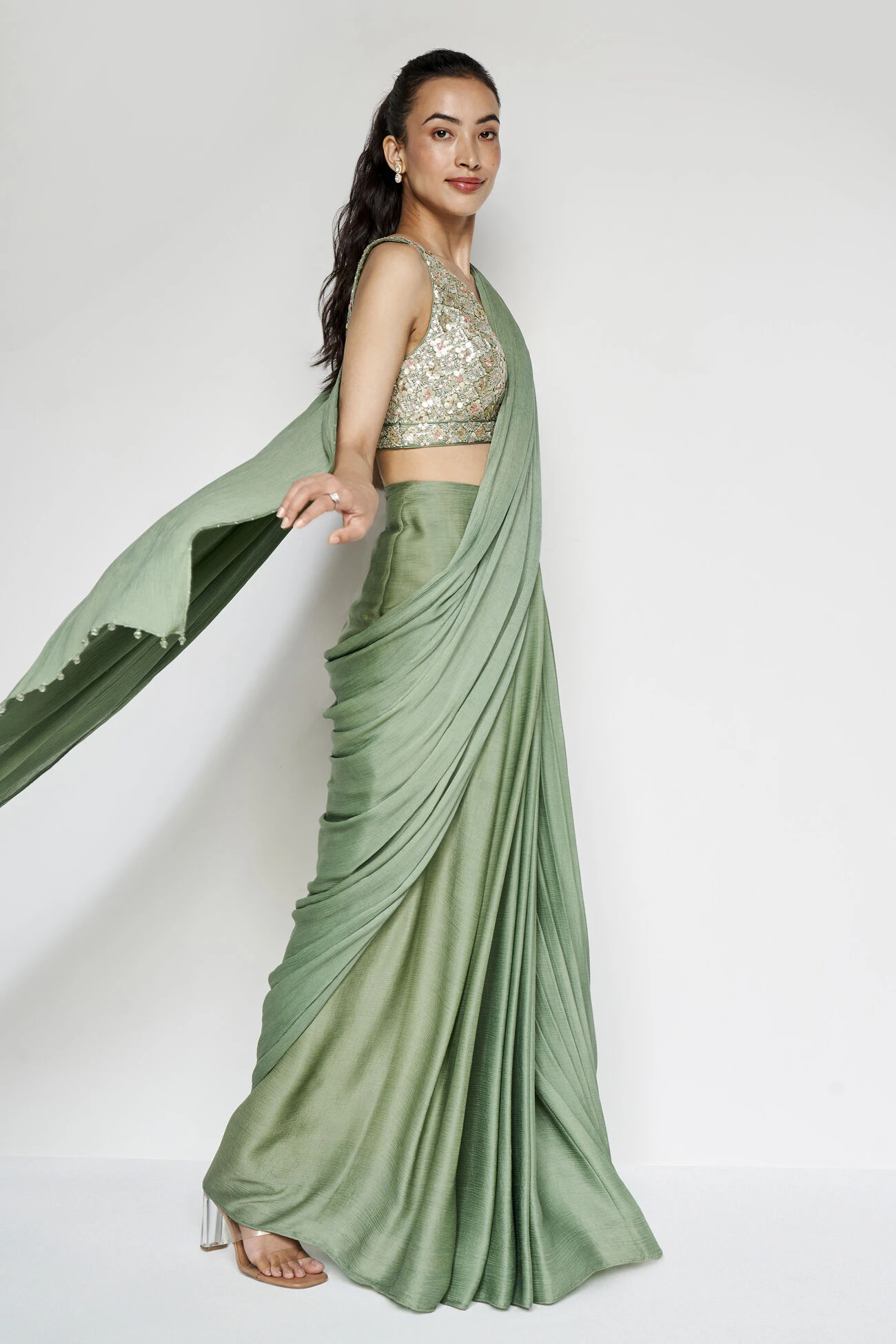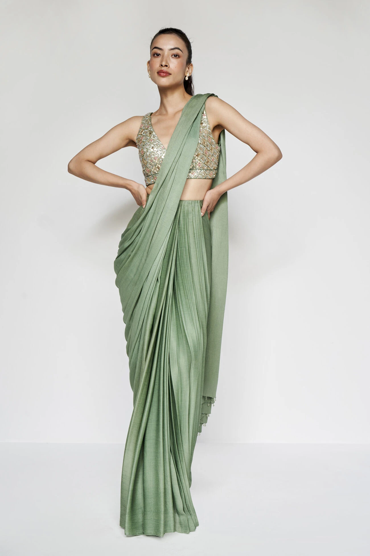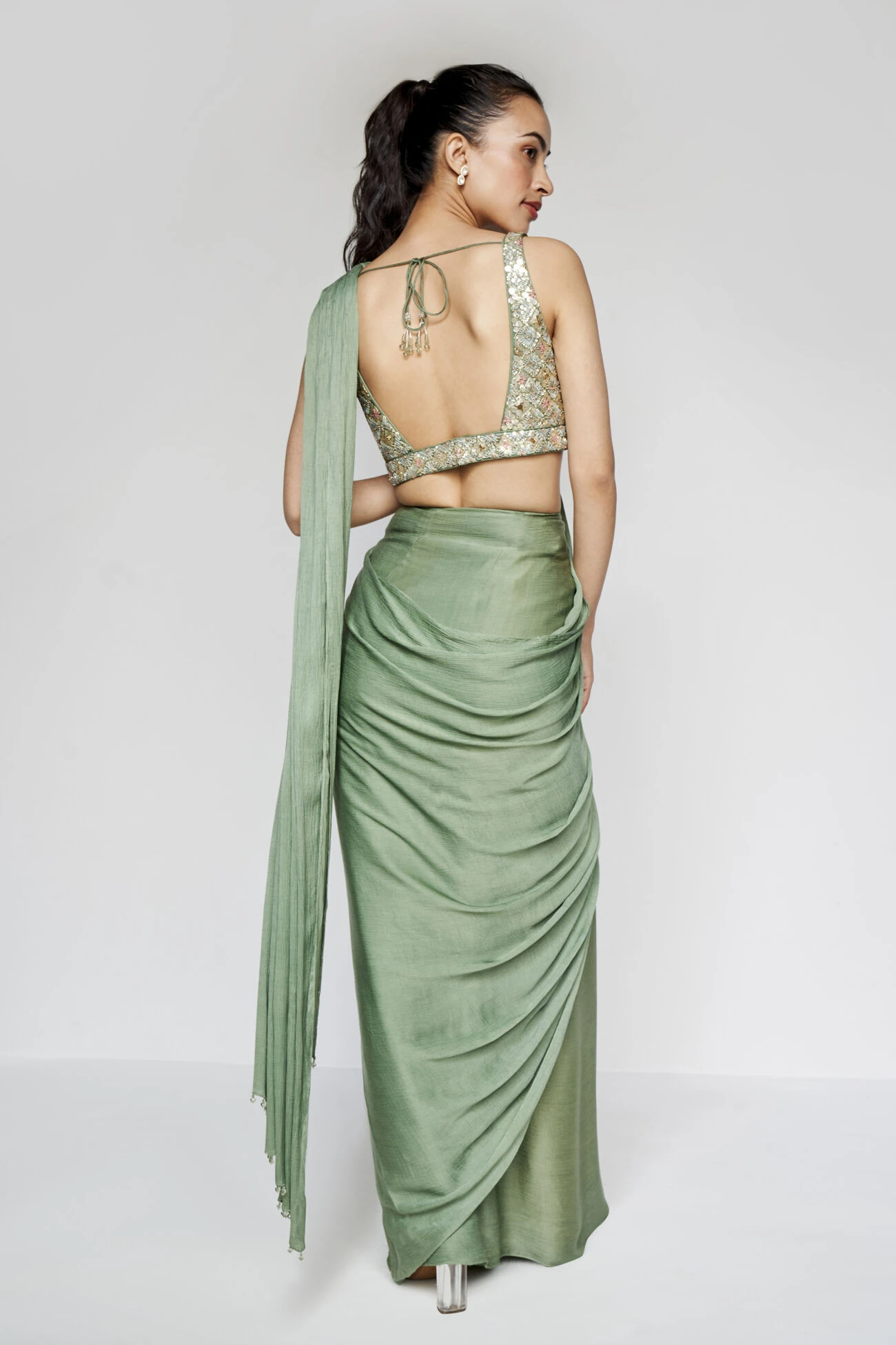 A dreamy drape that is pre-stitched for modern celebrations. The soothing color and absolutely soft fabric make it a must-have for glamorous soirees.