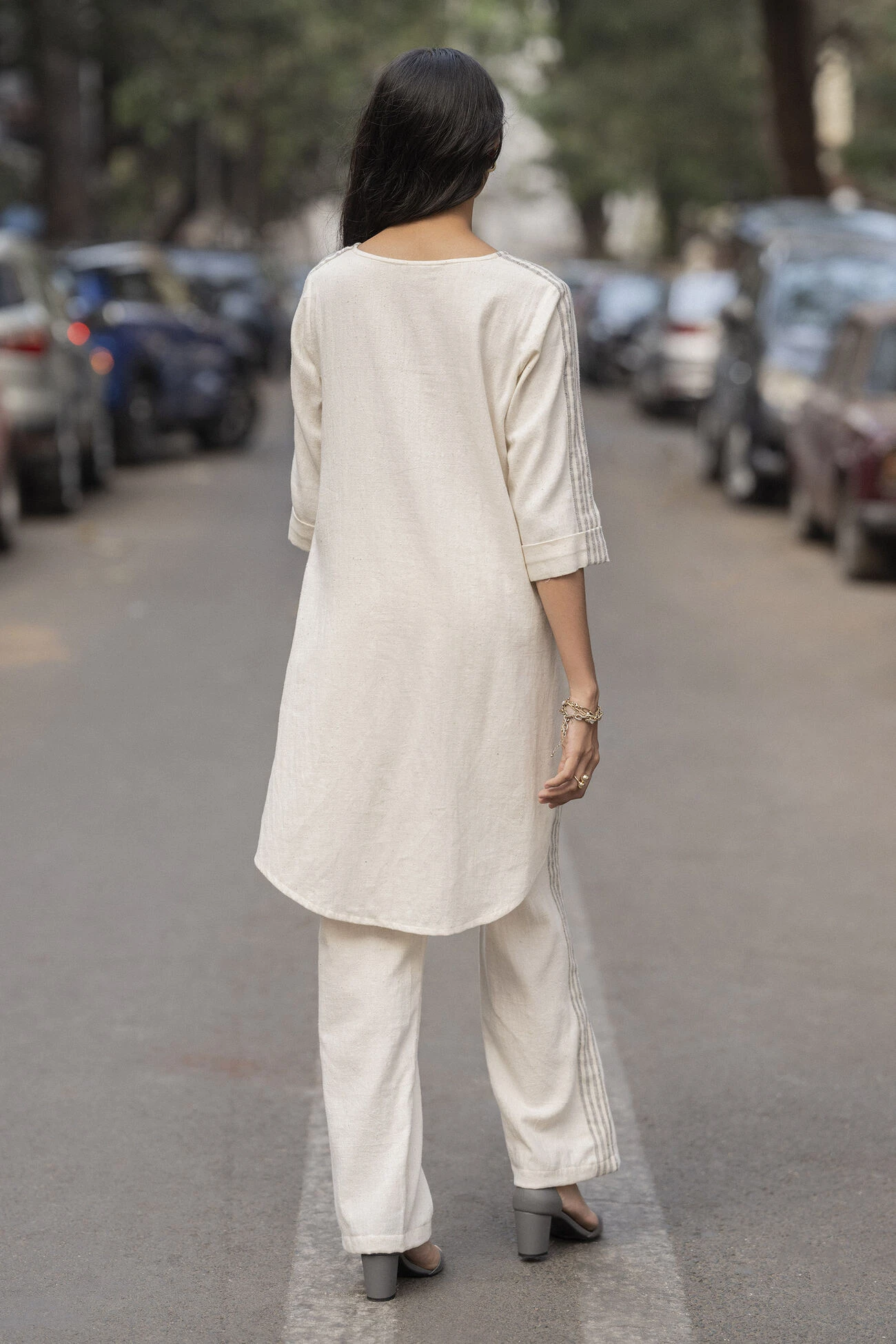 A coord set that is eclectic, easy and breathable. Handwoven in Bhujodi and perfect for summers.