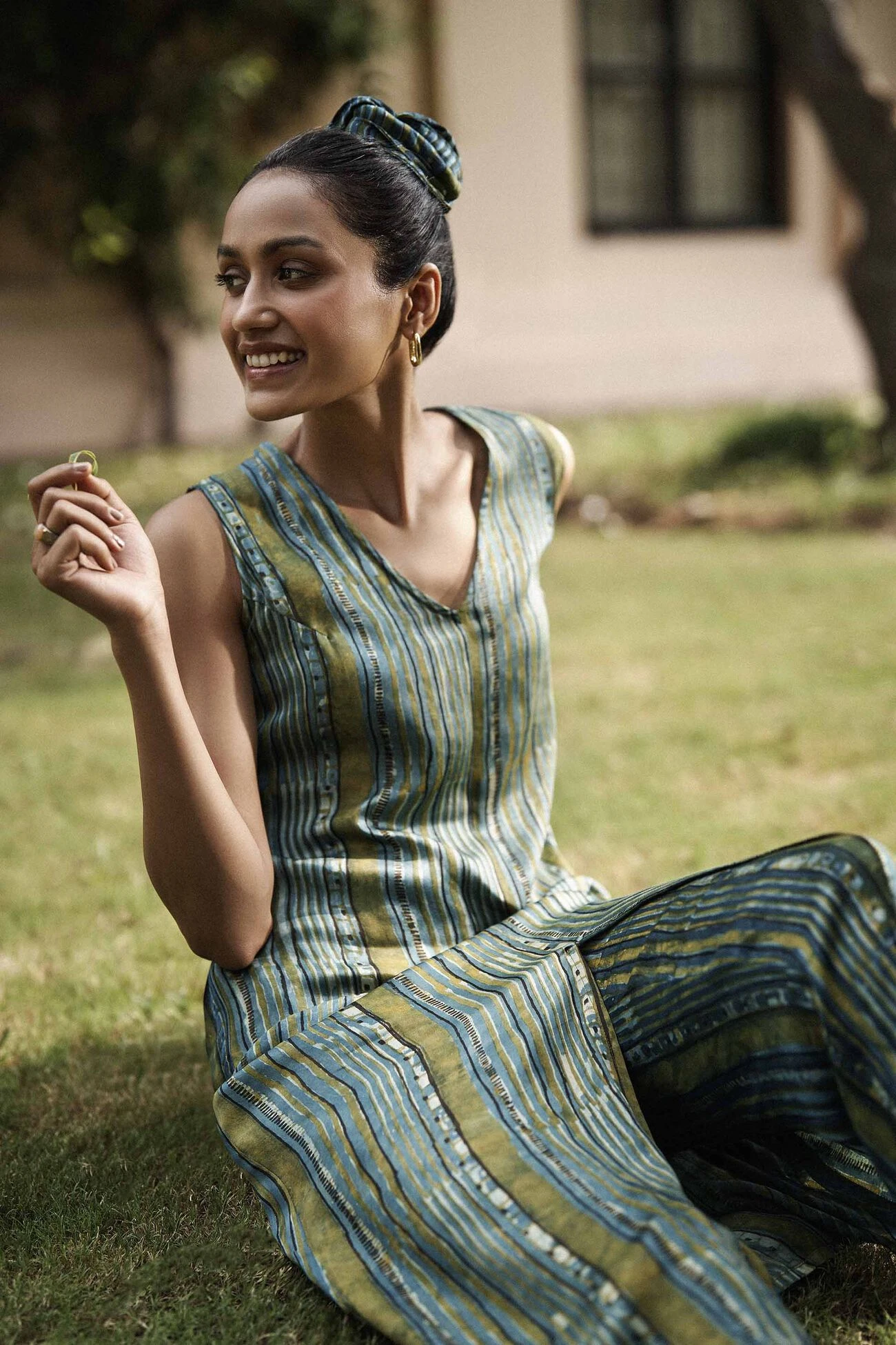 A fun silhouette in a soft fabric to work or play in. Sway reminds you to dream a little or take a break. Crafted in a lush palette of block prints.