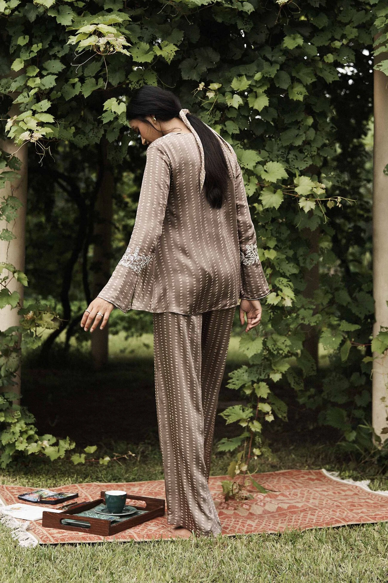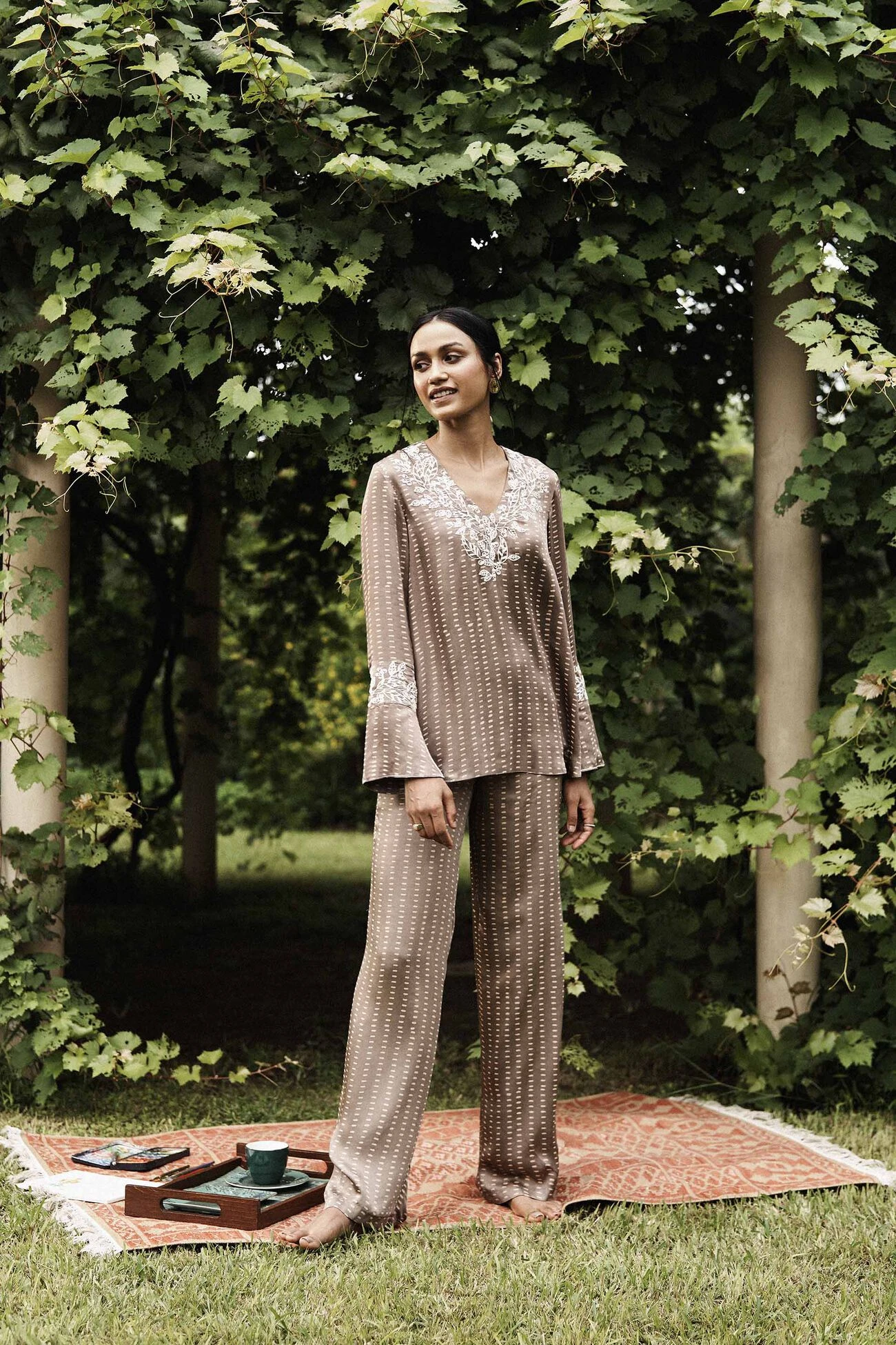 Dream a little while you paint, explore or unwind in this coord. Handcrafted in a soft fabric with a neckline that is an expression for your love of nature.